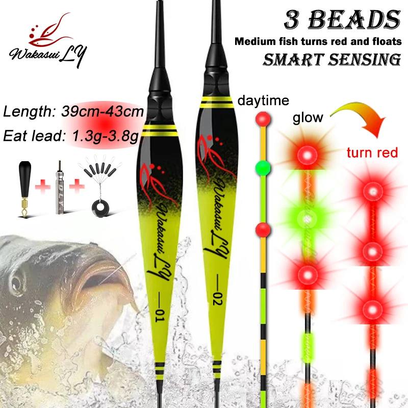 WAKASUILY-Sensor de gravedad electrónico de pesca, flotador que gira en rojo, 3 cuentas, sensibilidad llamativa, accesorios de pesca de carpa