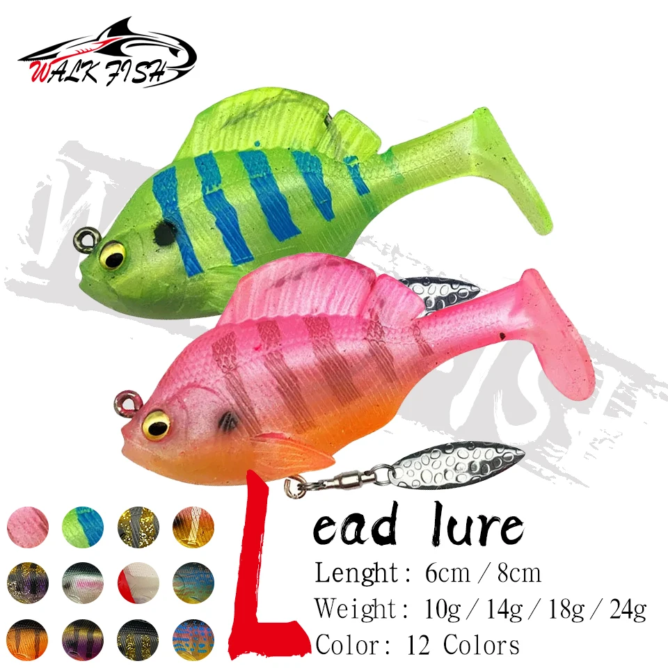 WALK FISH 1 Uds 6cm/8cm 10g-24g señuelo de pesca VIB Jig plomo giratorio lentejuelas pez plomo cola en T suave hueco biónico cebos artificiales