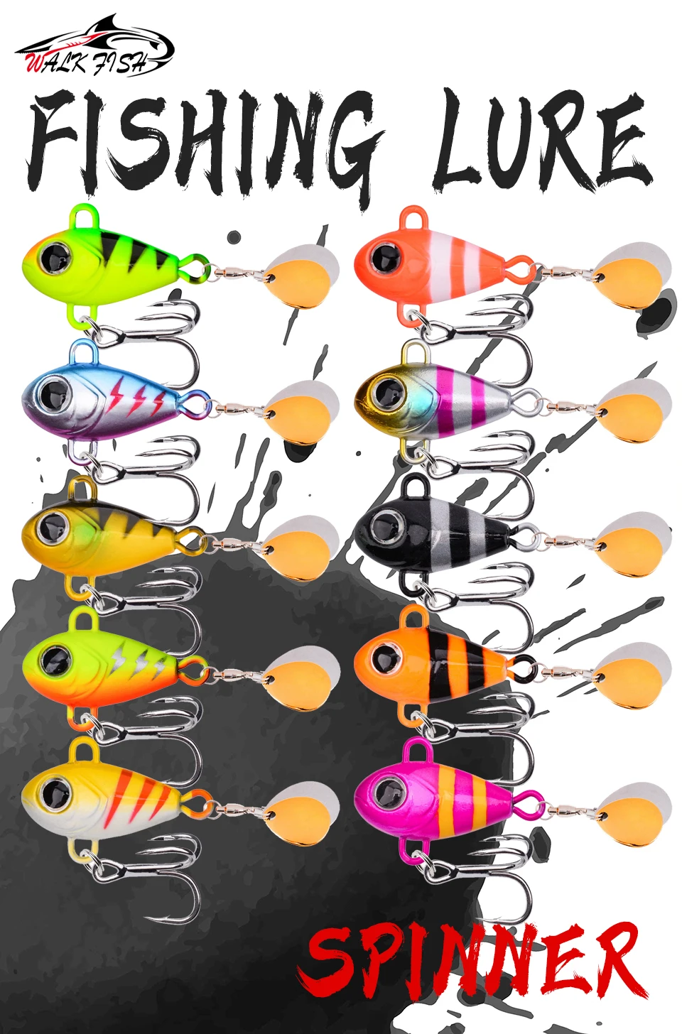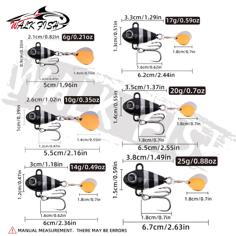 WALK FISH 1 Uds 6g-25g señuelo de pesca giratorio Metal vibración cebo cuchara señuelos Metal señuelo de pesca cebo duro Spinnerbait Tackle Especificaciones: