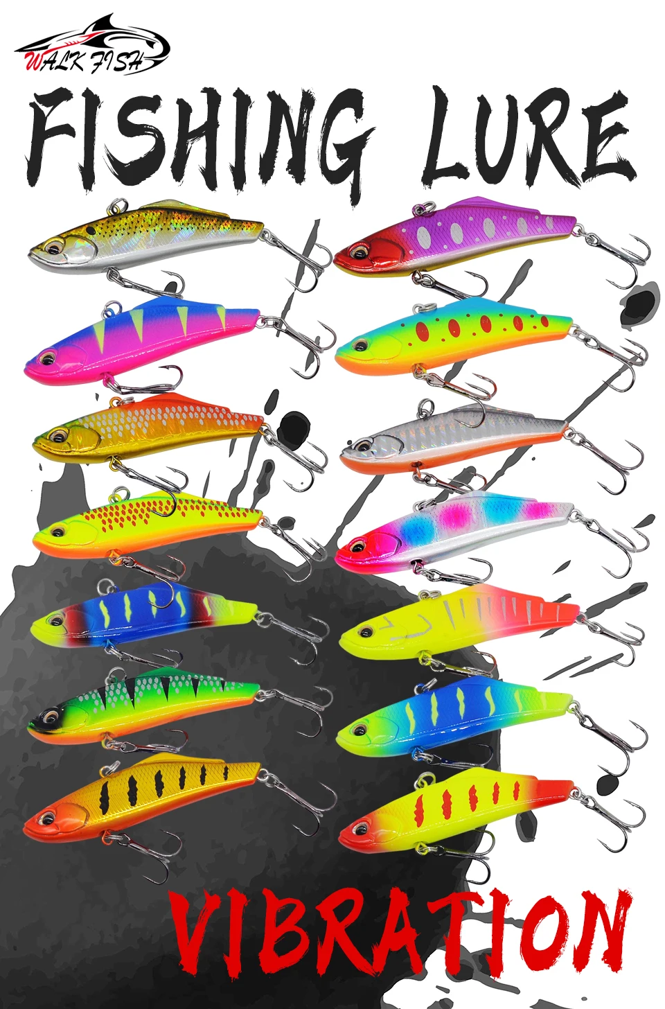 WALK FISH 1 Uds 70mm 15g nuevo señuelo de pesca VIB ojos 3D cebo Artificial vibración hundimiento señuelos duros Swimbait aparejos de pesca