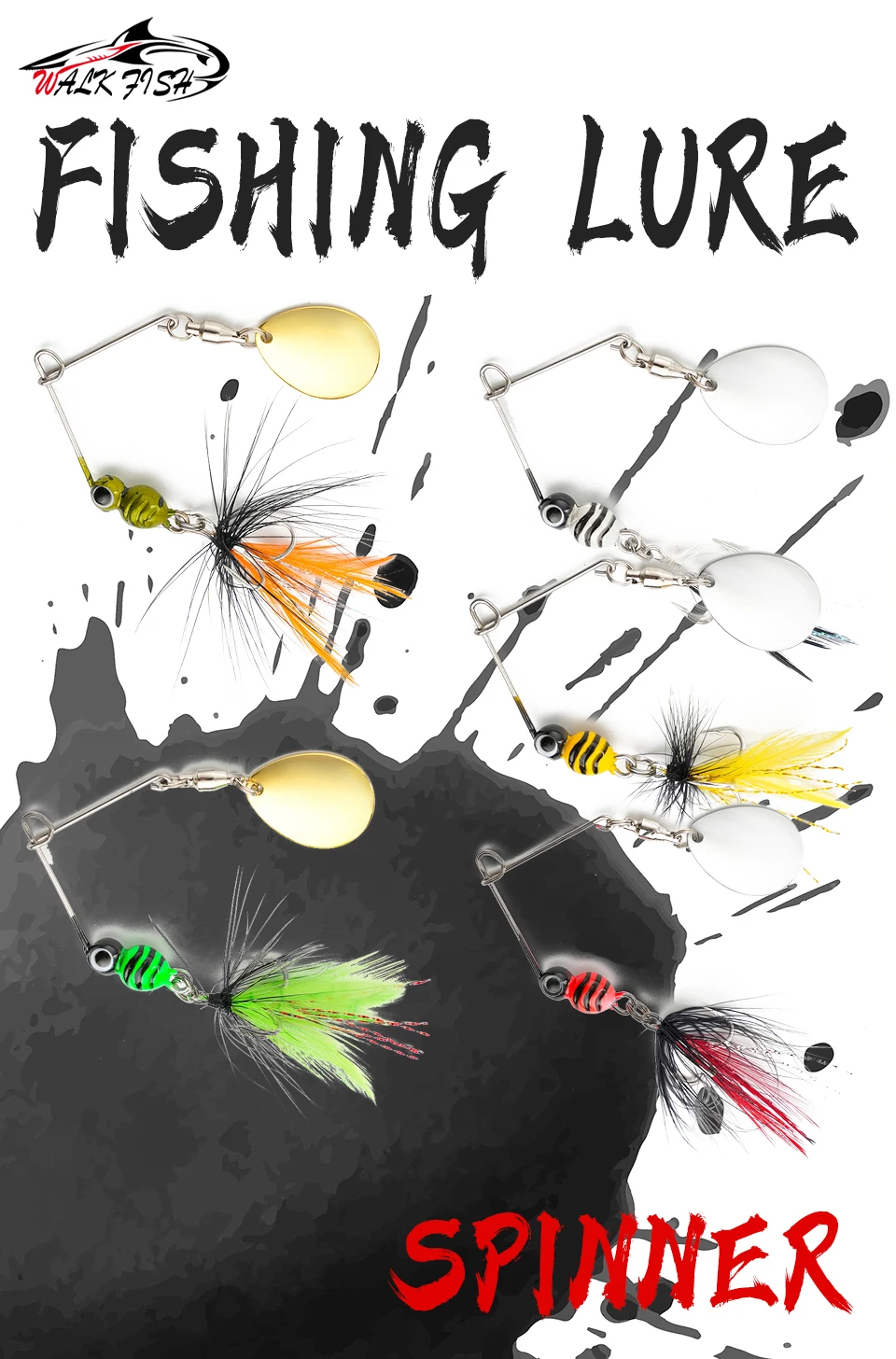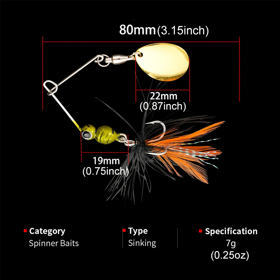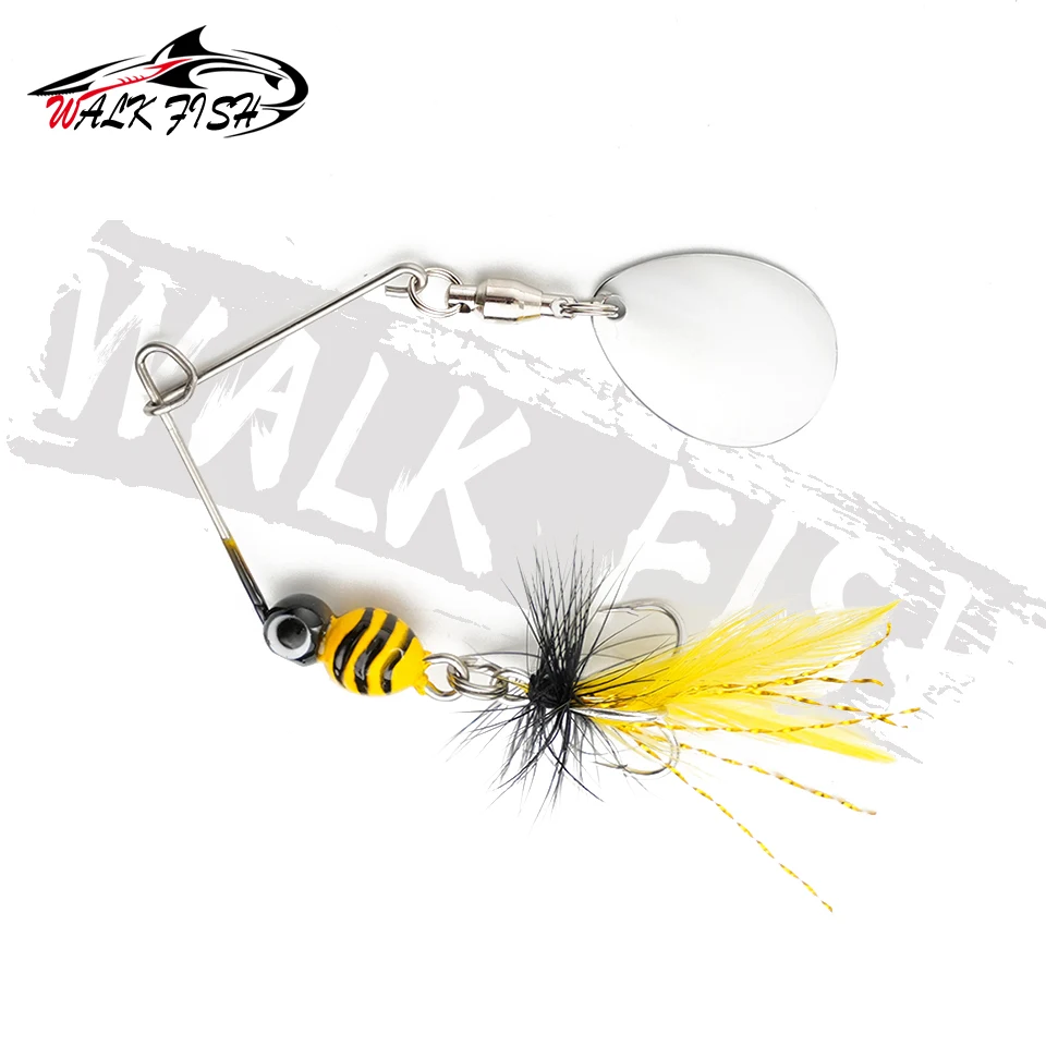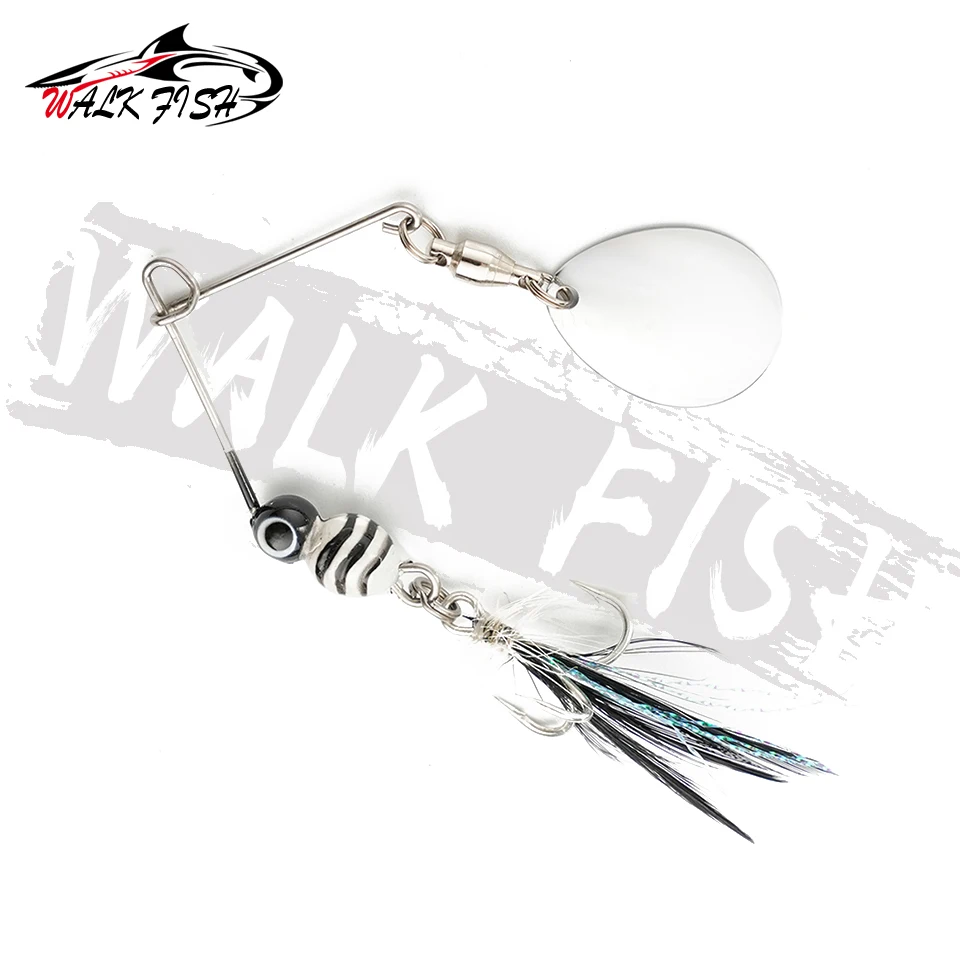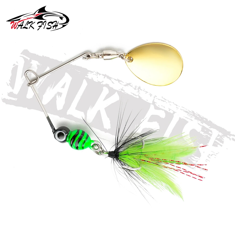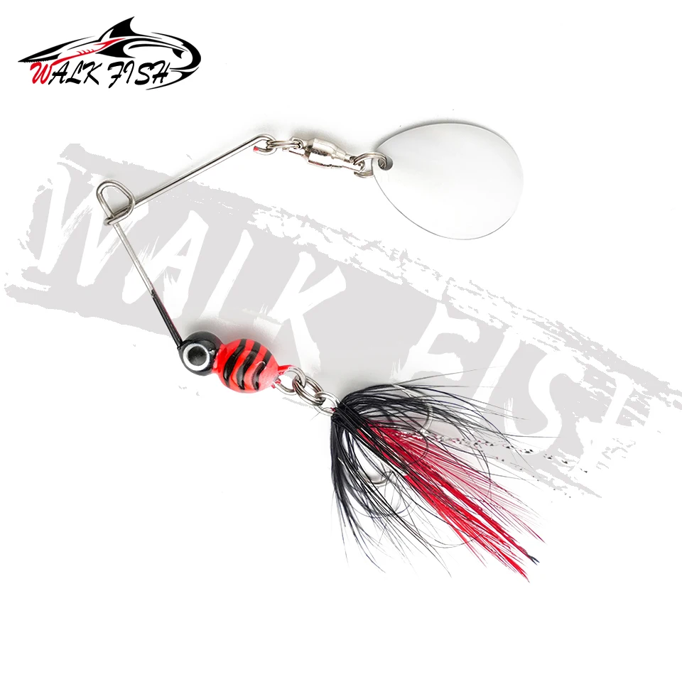 WALK FISH 1 Uds 80mm 7g Spinner señuelo pluma de Metal Tweeter cebo de pesca cebo curvo Artificial lubina columpio Micro-raíz simular