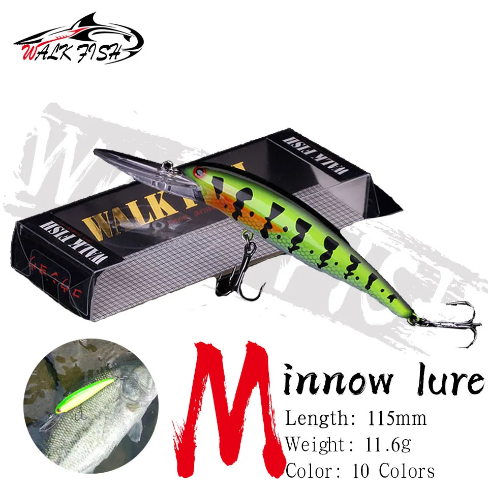 WALK FISH 1 Uds cebo duro 115mm 11,6g calidad Minnow señuelo de pesca manivela Wobble profundidad 3-4m mejores anzuelos para aparejos de pesca