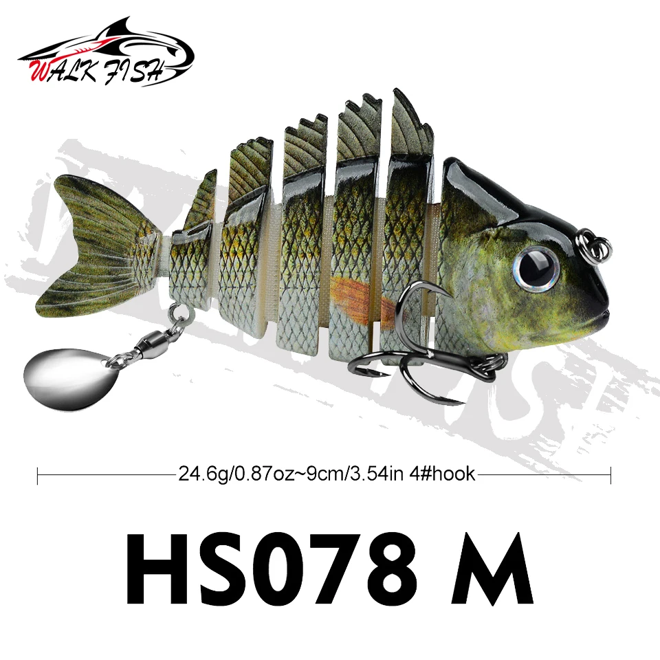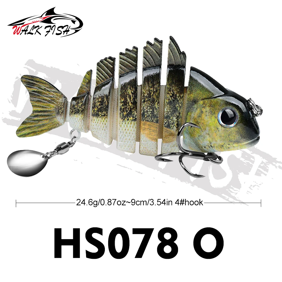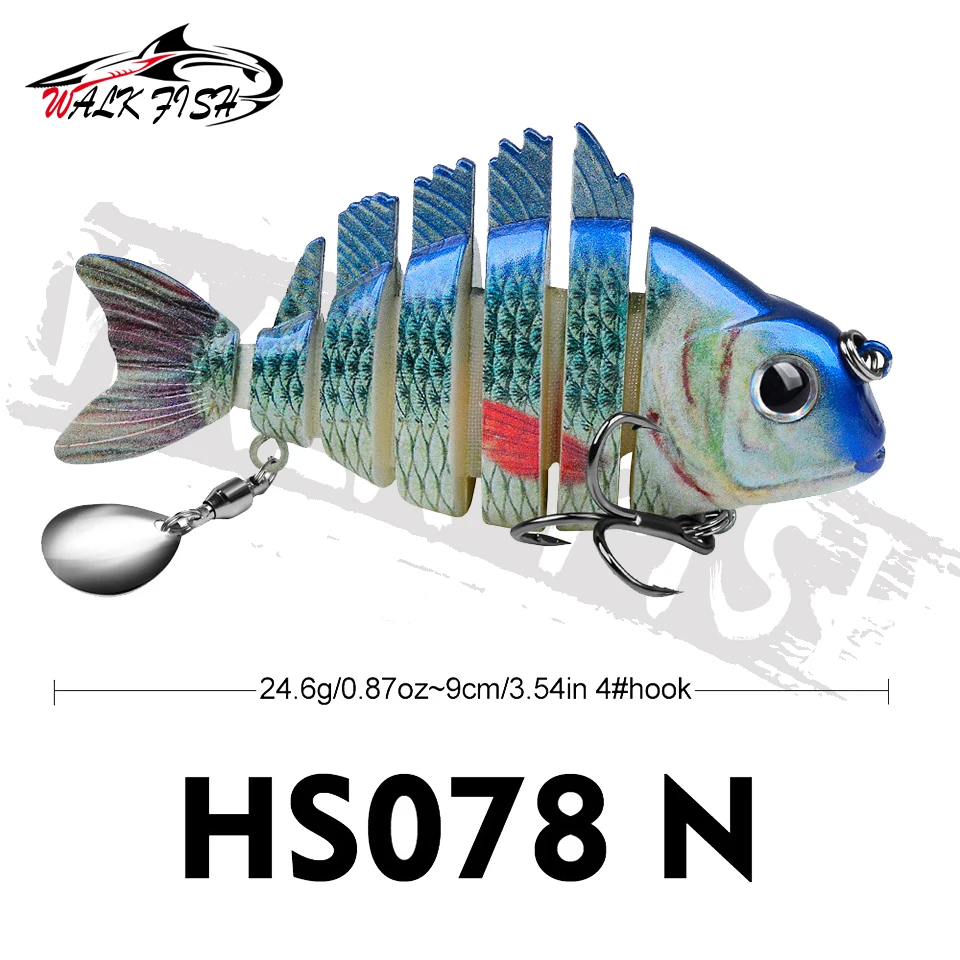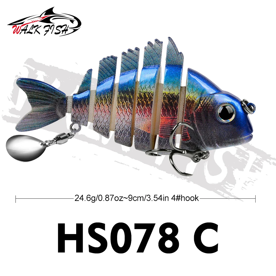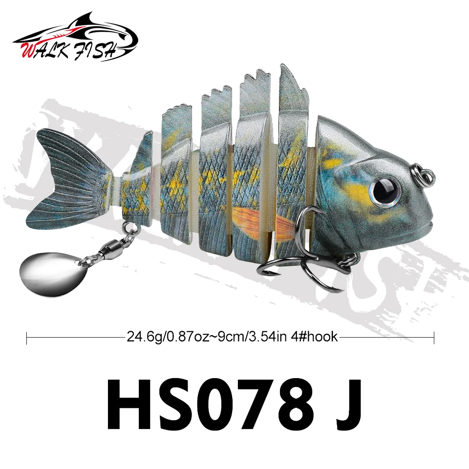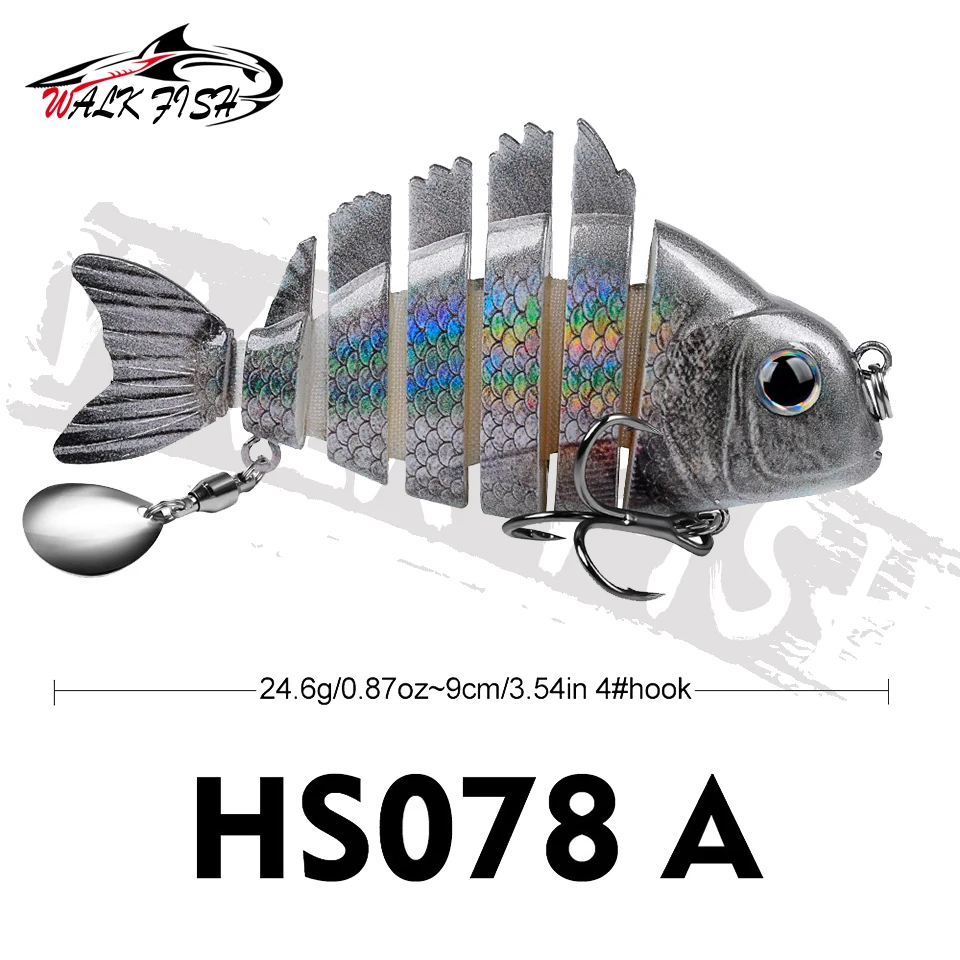 WALK FISH 1 Uds. Nuevos señuelos de pesca 9cm/24,6g para lubina trucha, cebos de natación multiarticulados, señuelos de natación lentos con lentejuelas intermitentes Especificaciones: