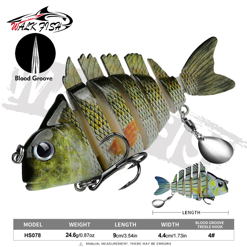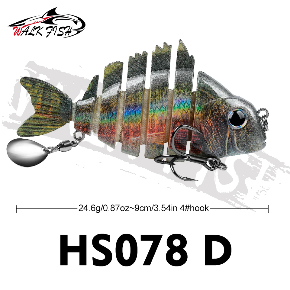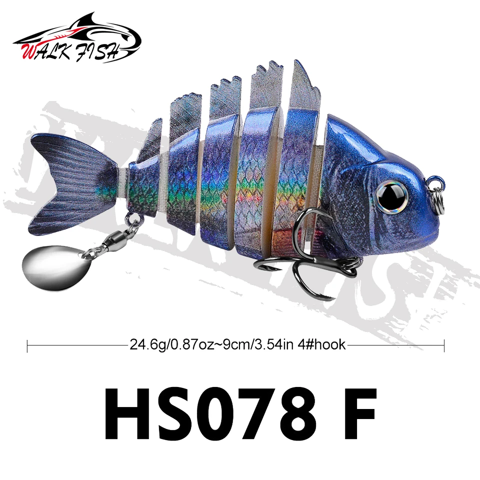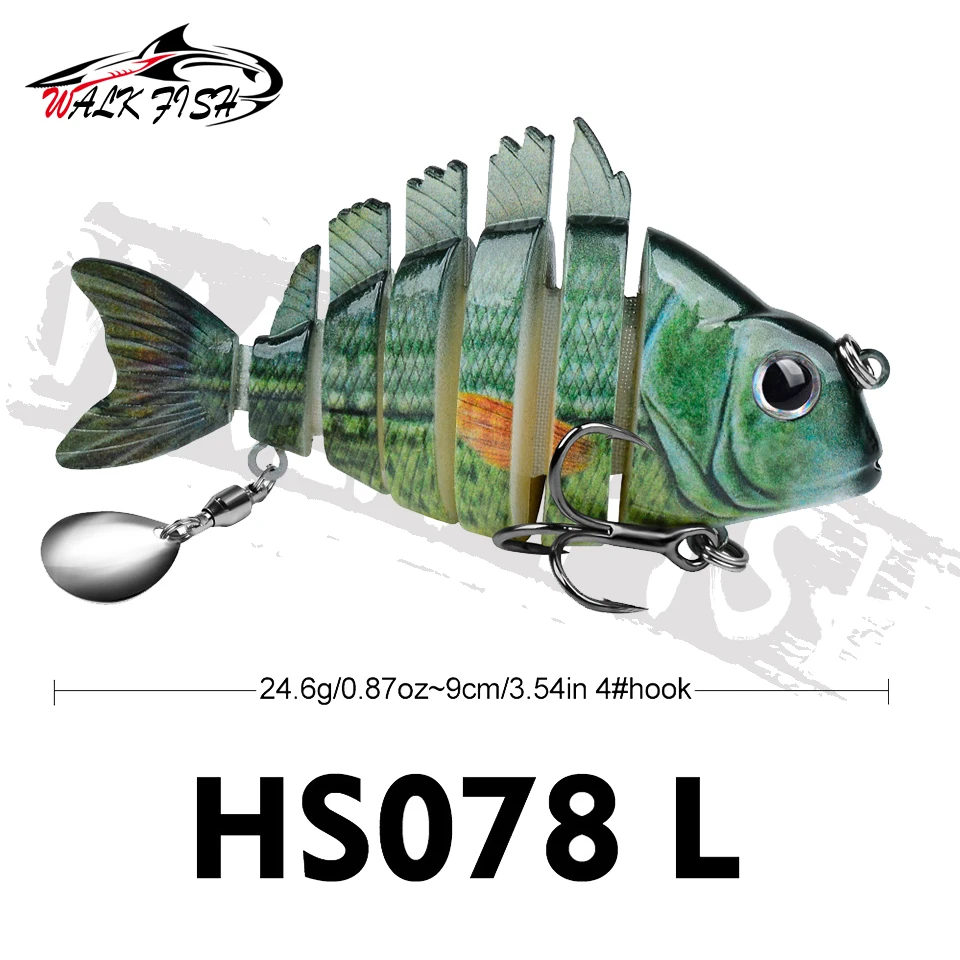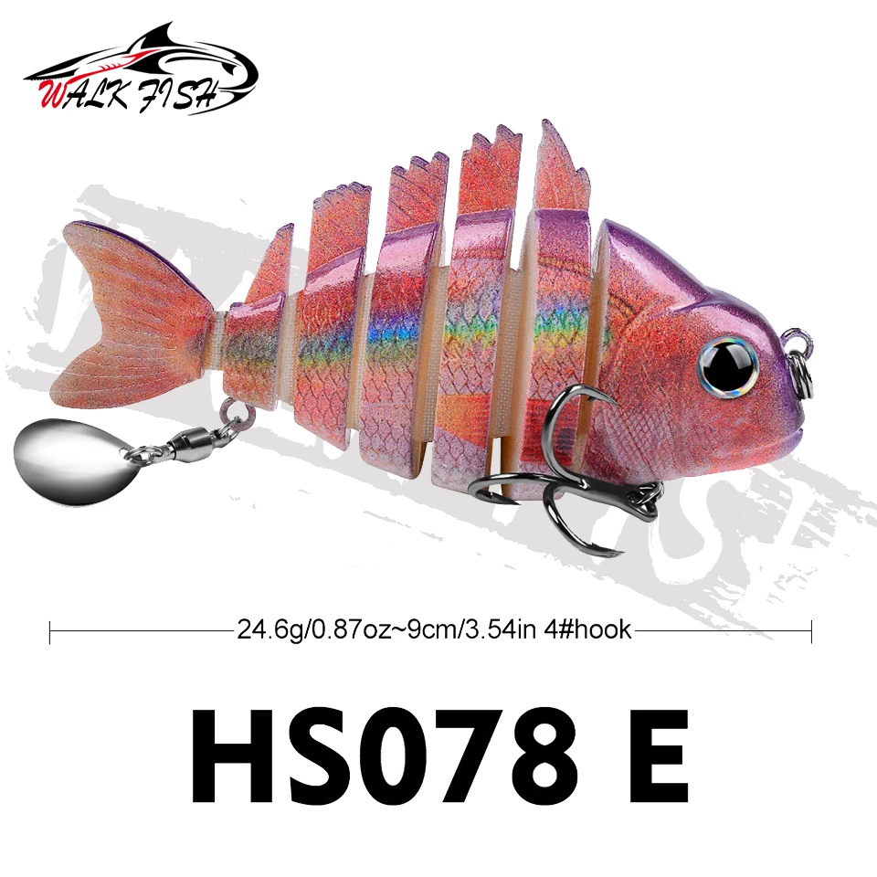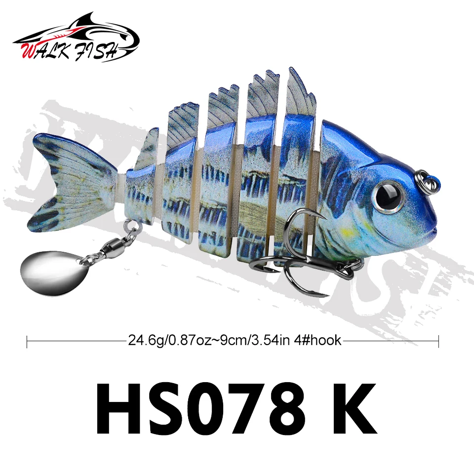 WALK FISH 1 Uds. Nuevos señuelos de pesca 9cm/24,6g para lubina trucha, cebos de natación multiarticulados, señuelos de natación lentos con lentejuelas intermitentes Especificaciones: