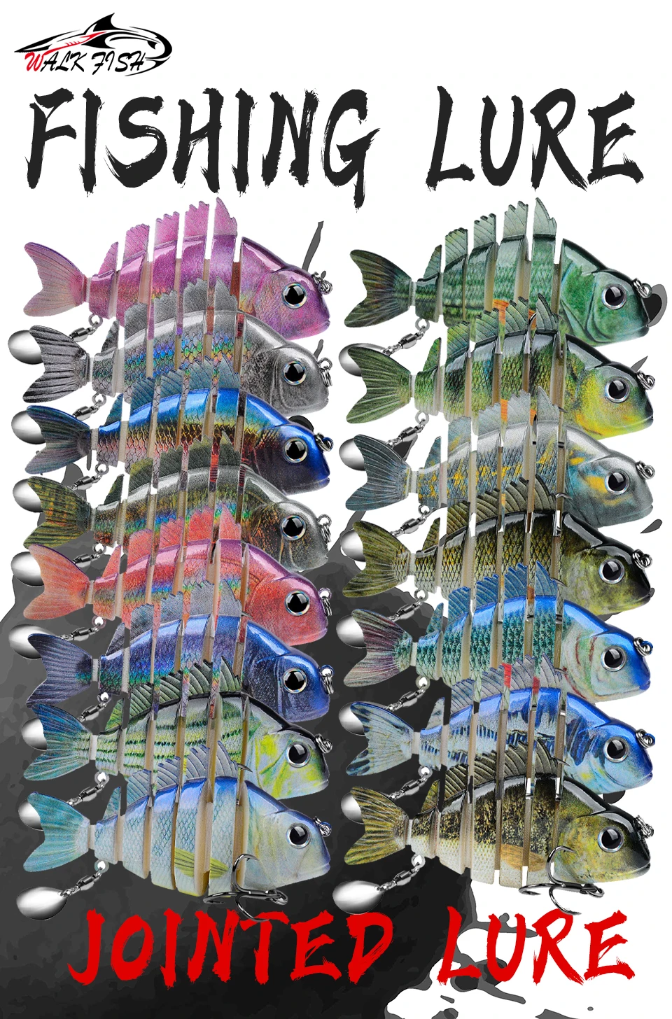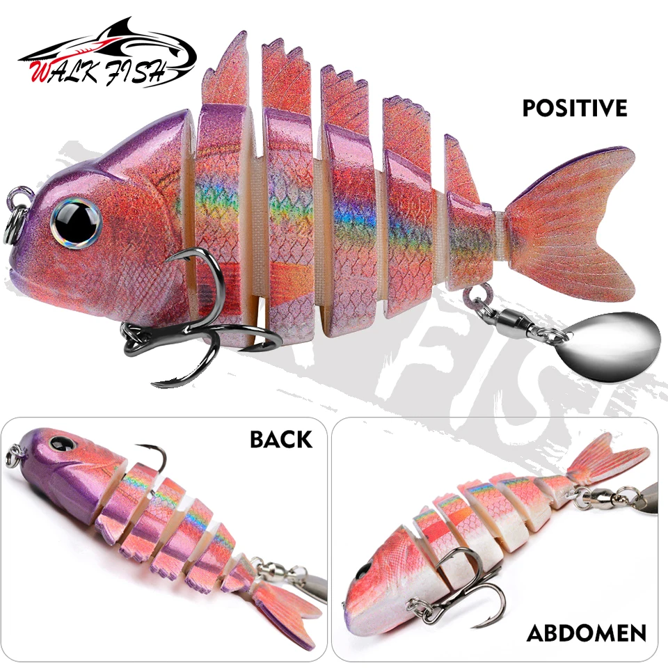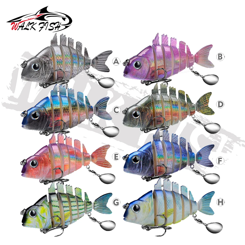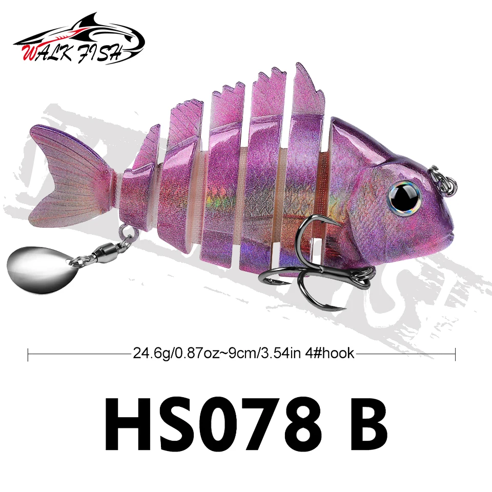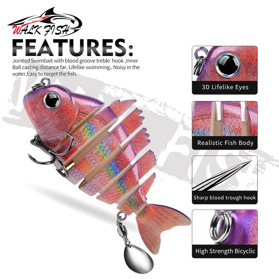 WALK FISH 1 Uds. Nuevos señuelos de pesca 9cm/24,6g para lubina trucha, cebos de natación multiarticulados, señuelos de natación lentos con lentejuelas intermitentes Especificaciones: