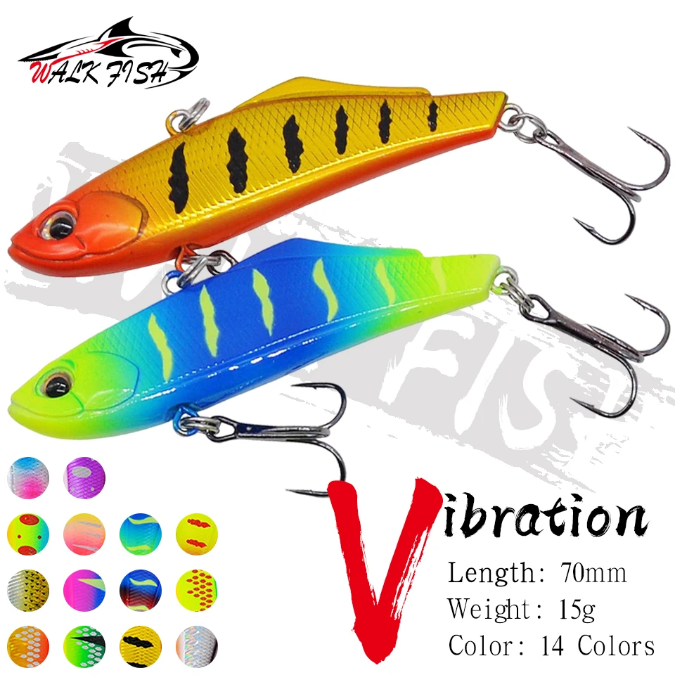 WALK FISH 1 Uds nuevo señuelo de pesca VIB cebo Artificial ojos 3D 70mm 15g Swimbait vibración hundimiento señuelos duros aparejos de pesca