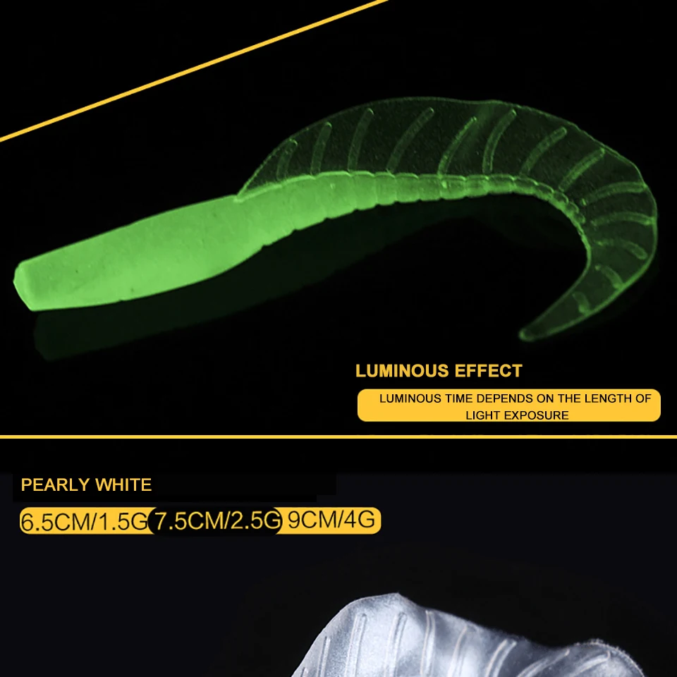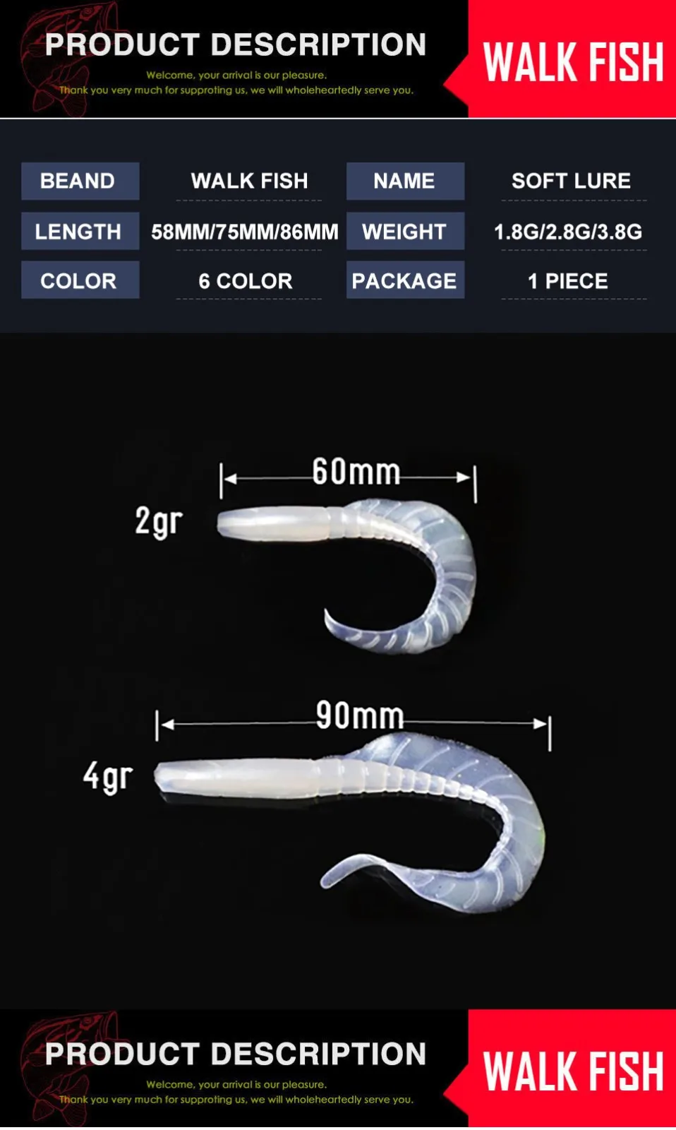 WALK FISH 10 unids/lote 58mm/75mm/86mm cebos blandos de gusano cebos falsos biónicos cebos de silicona luminosos aparejos de Pesca de mar de agua dulce