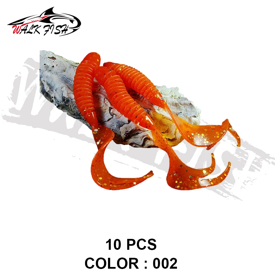 WALK FISH 10 unids/lote señuelo de pesca en hielo de invierno 70mm 2.5g señuelo suave de cola de horquilla cebo de pesca Jig Head aparejos de pesca Texas