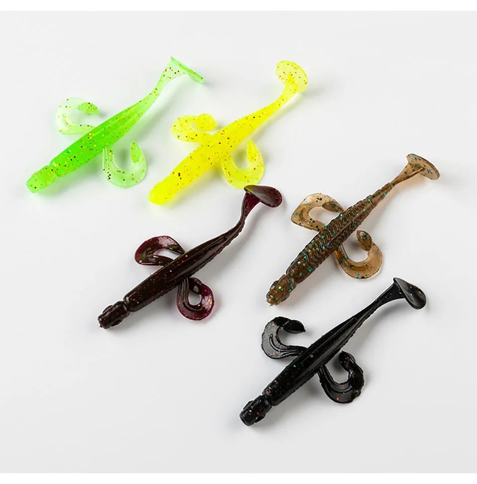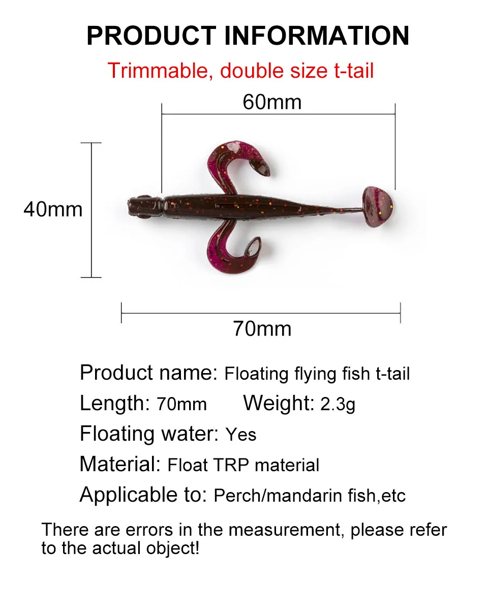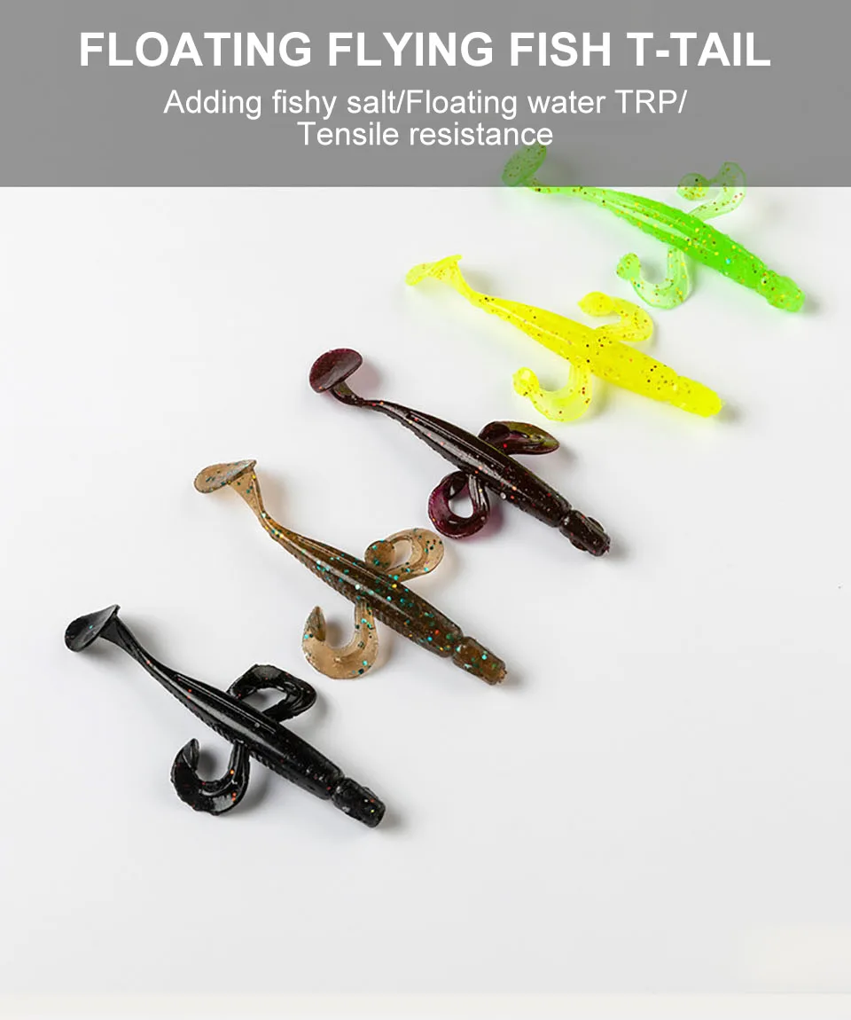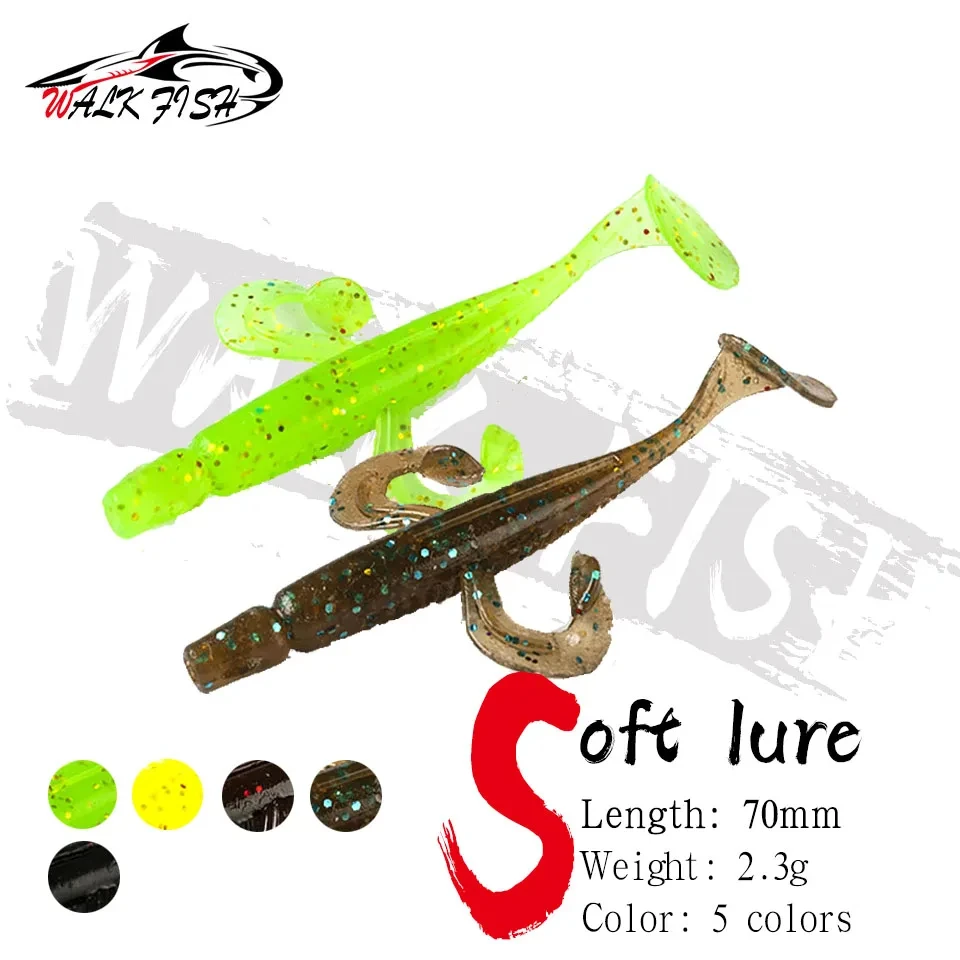 WALK FISH 12 unids/lote nuevo 70mm 2,3g TPR señuelo de pesca flotante pez volador cola en T cebo suave Swimbaits señuelo de Jigging señuelo de trucha