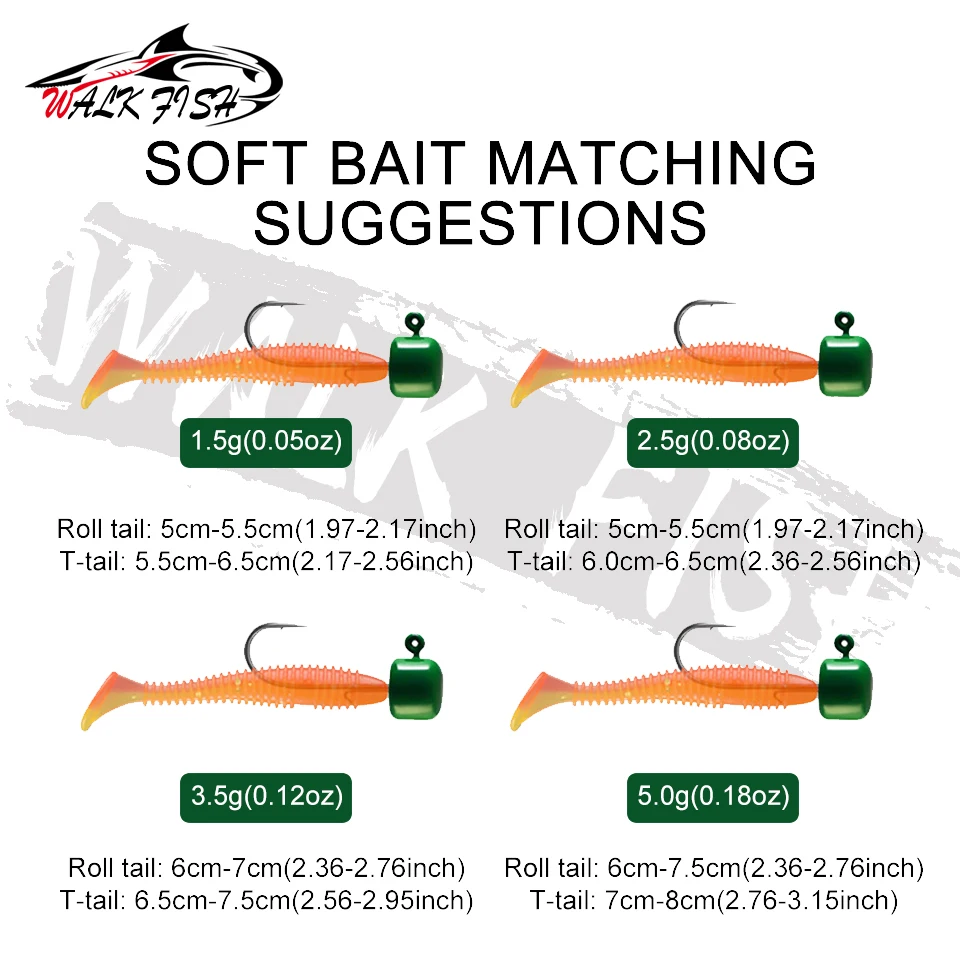 WALK FISH 5 uds 3.5G/5G anzuelos de pesca Ned Rig Jig hongo Jig cabezales suaves cebos de gusano ganchos para lubina trucha Lucio