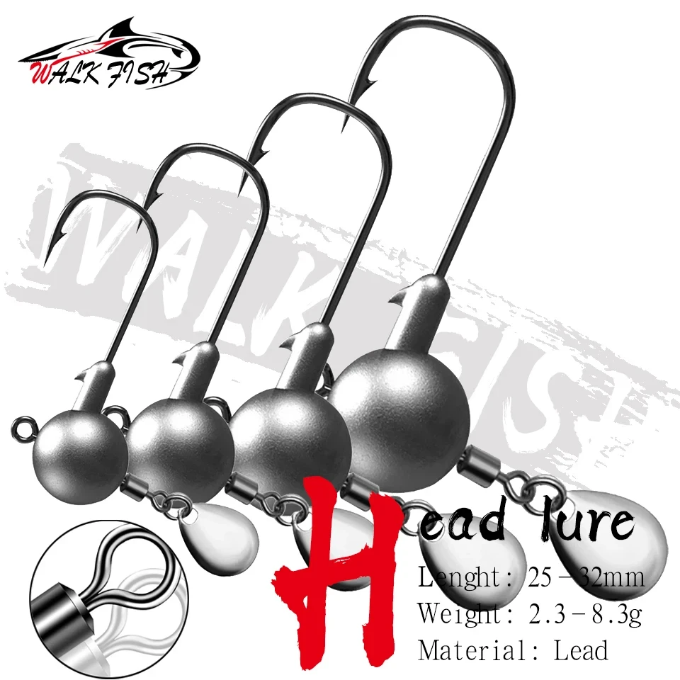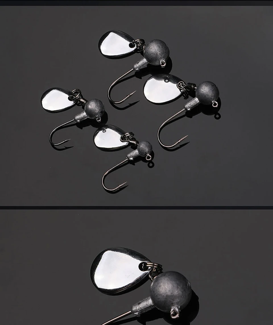 WALK FISH 5 unids/lote 2,3-8,3g anzuelo con cabeza de anzuelo de plomo con cuchara giratoria de Metal lentejuelas ruido suave señuelo gusanos accesorios de aparejos de pesca