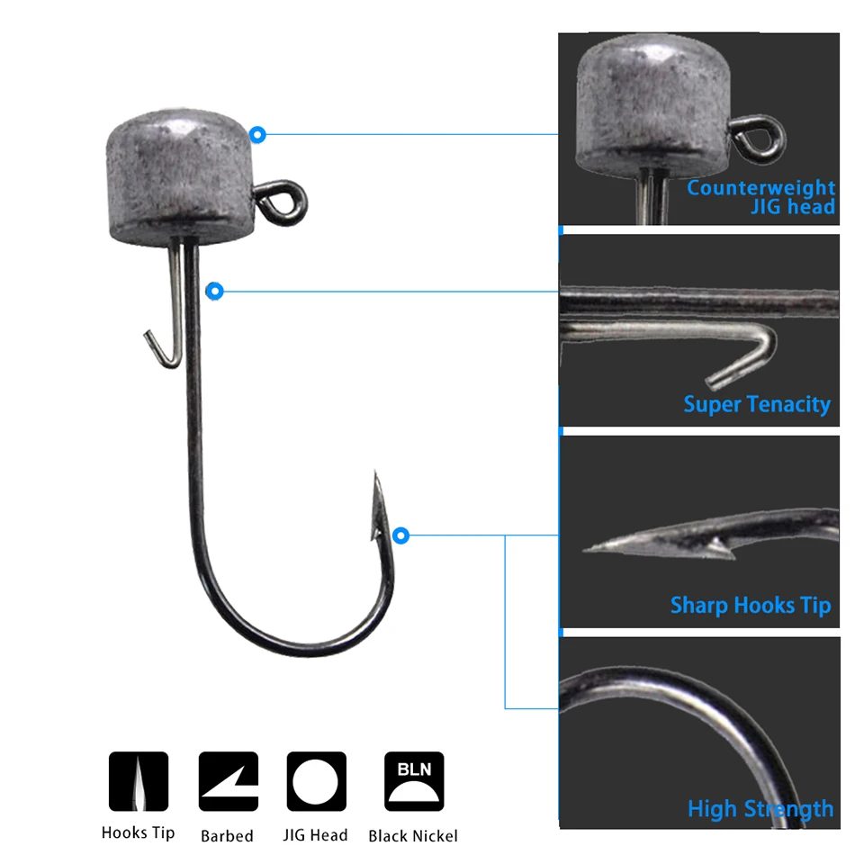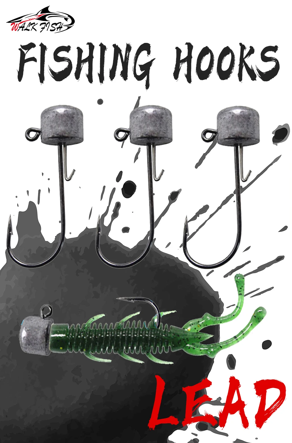 WALK FISH 5 unids/lote 2,5g 3.5g 5g 6g anzuelo de pesca manivela Jig cabeza gancho de pesca cabeza de plomo Jig señuelo cebo duro suave gusano Jig gancho