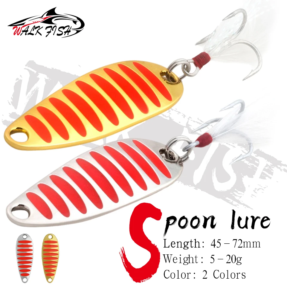 WALK FISH 5g 7g 10g 15g 20g cuchara de pesca señuelo oro plata con pluma cuchara de pesca señuelos duros cebos de Metal aparejos de Pesca