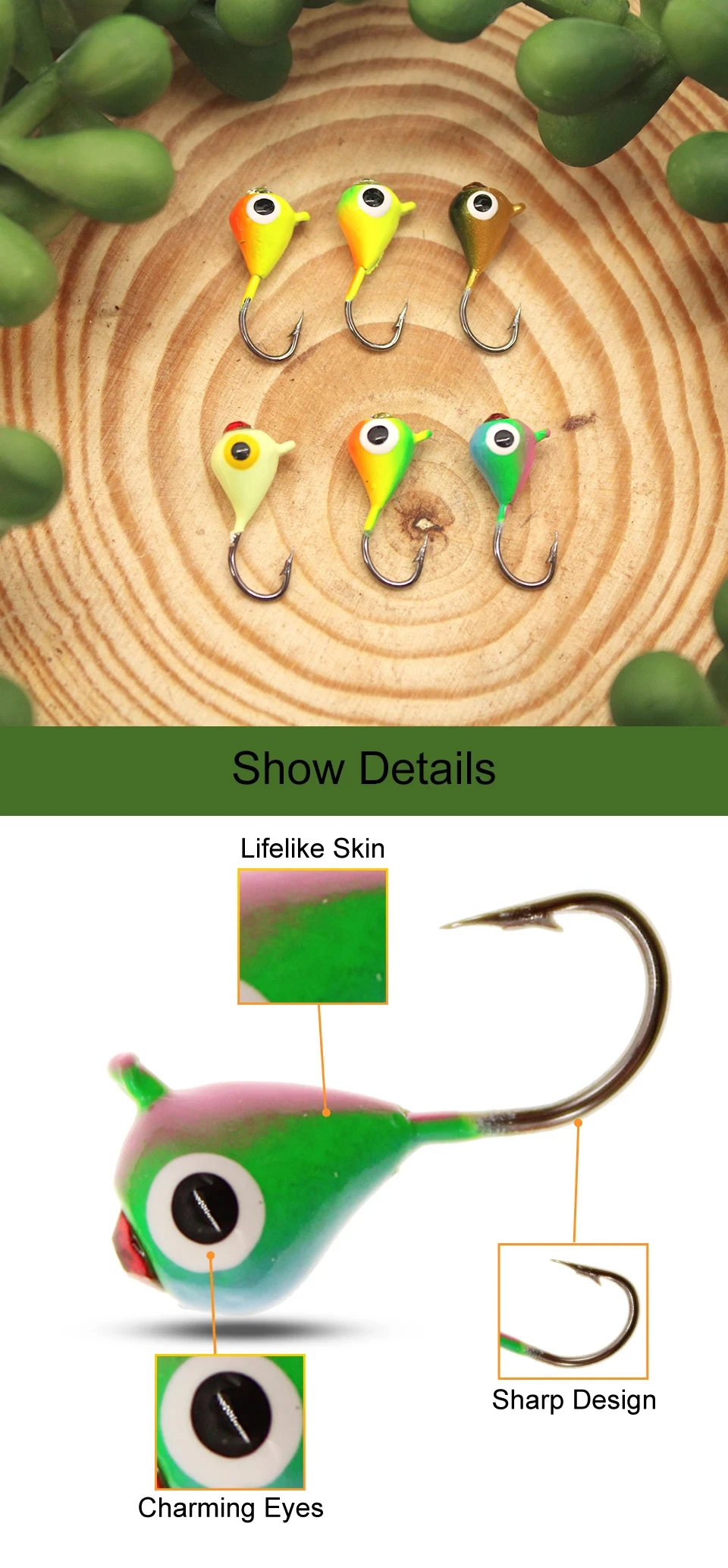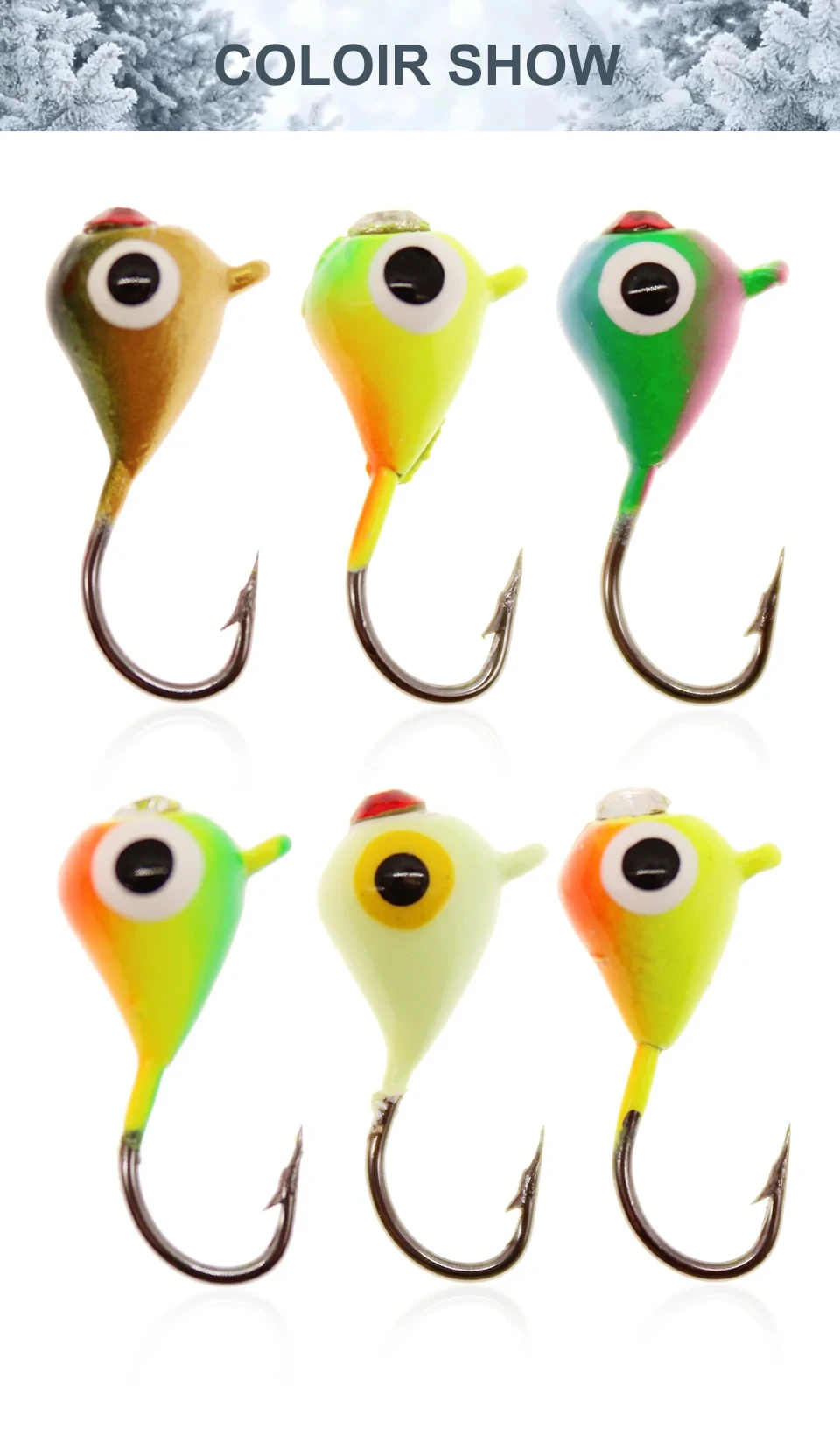WALK FISH 6 uds/1 Juego 15mm 1,1g 6 colores anzuelo de pesca en hielo anzuelo señuelo cebo de Metal Mini anzuelo de pesca en hielo no balanceado cebo biónico