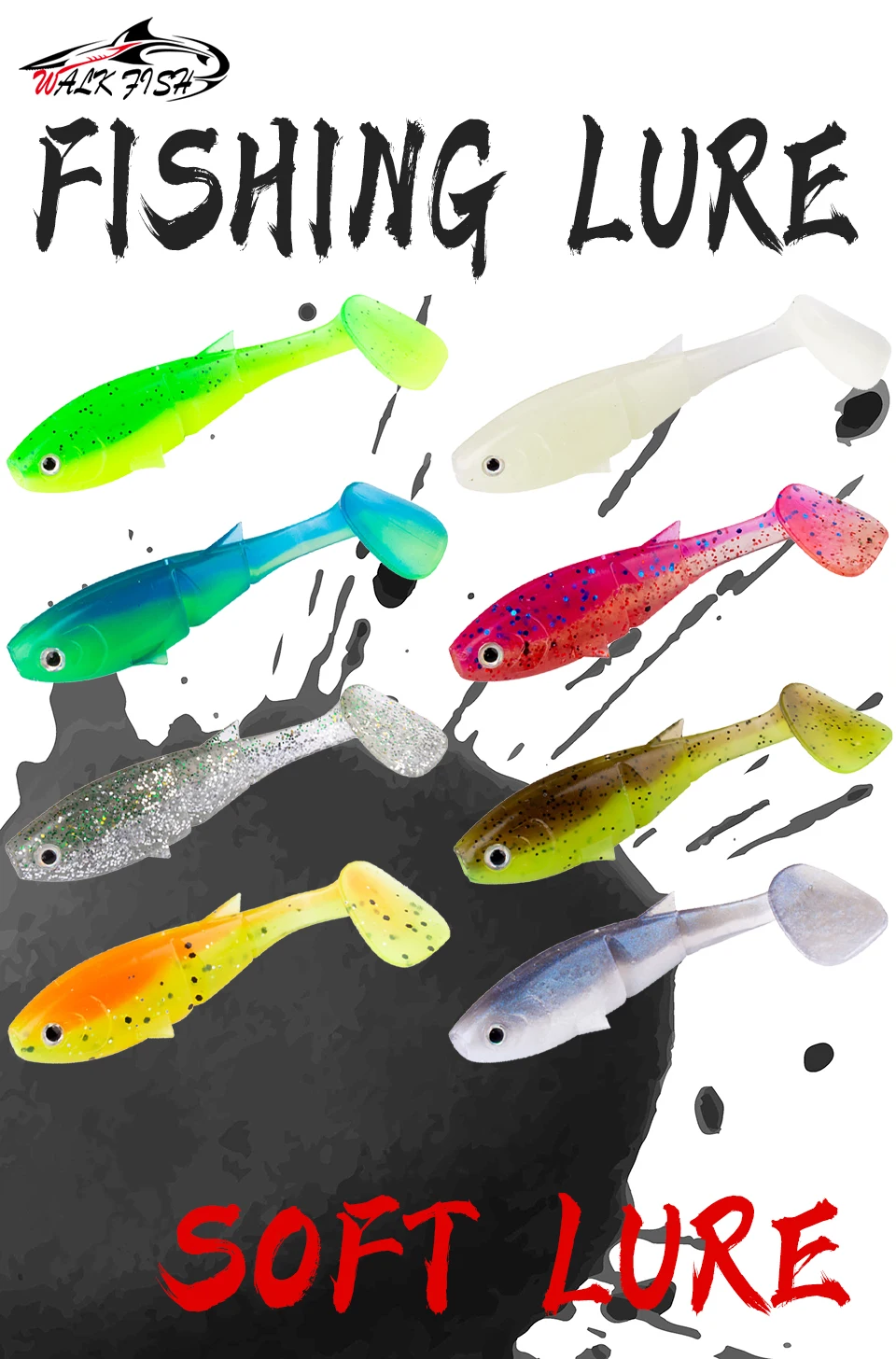 Señuelo Artificial WALK FISH, 6 uds., nuevo señuelo suave Shad Paddle Tail, 7cm, 4,5g, para pesca de carpa, doble Color, cola en T, señuelo Jigging