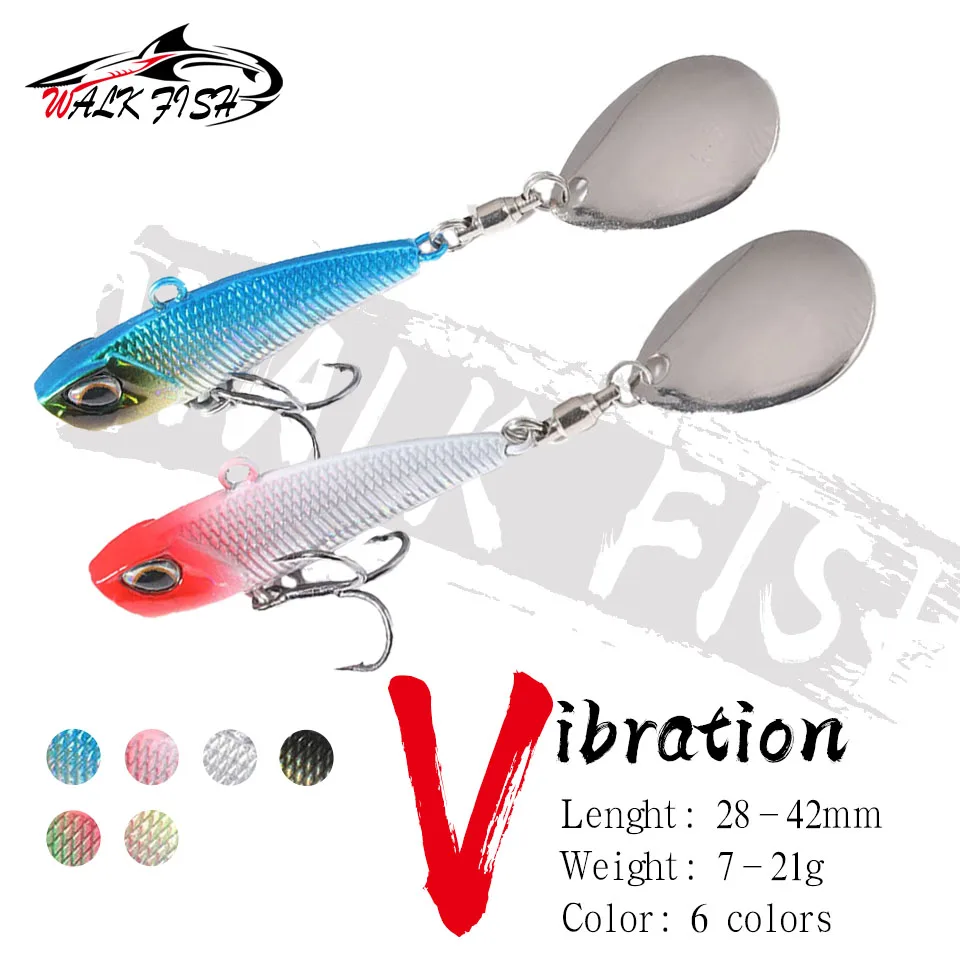 WALK FISH 7g 11g 15g 21g Spinner cebo Metal VIB señuelo de pesca Japón Wobbler cebo de pesca Pesca cola giratoria vibración lentejuelas