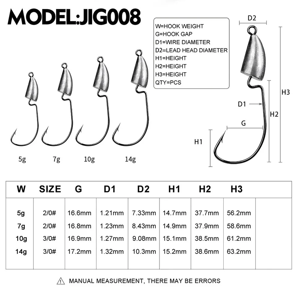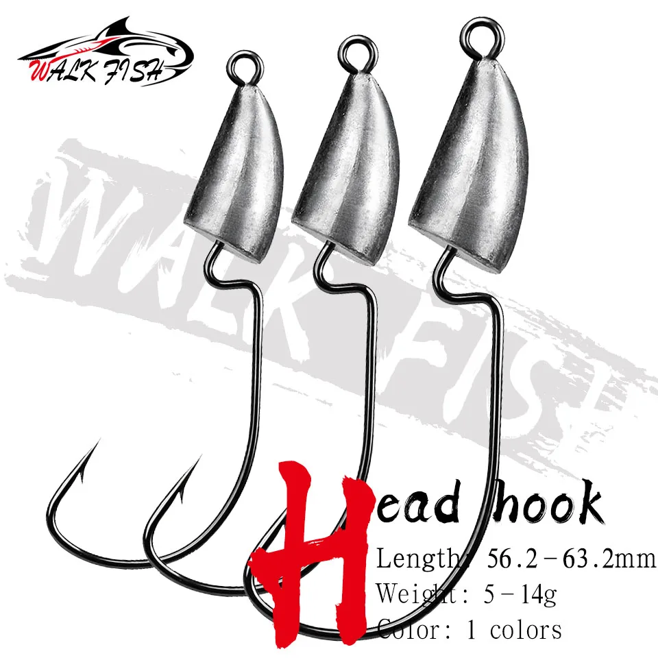 WALK FISH-anzuelo de acero al carbono con cabeza plomada, 5g, 7g, 10g, 14g, gusano Offset, señuelo de pesca, accesorios para aparejos de Texas, 5 uds.