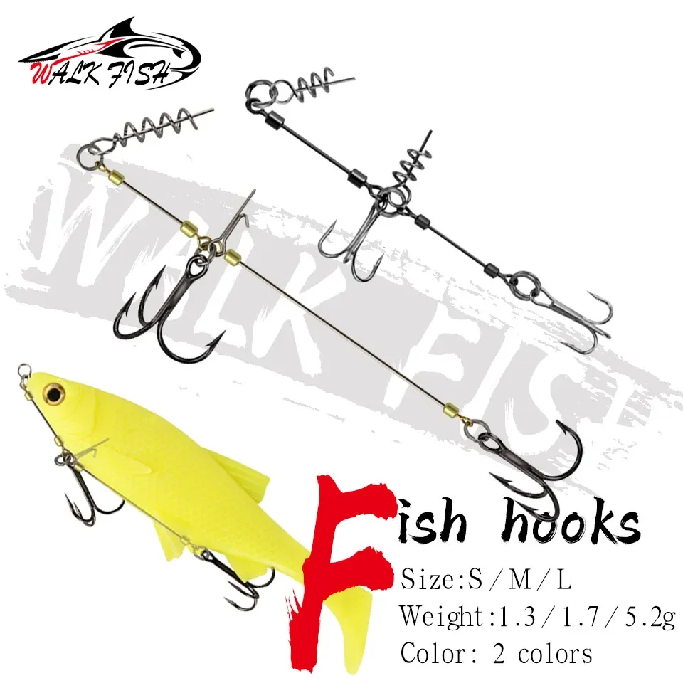 WALK FISH Stinger anzuelo de aparejo de pesca para Shad grande conector de tornillo de Pin central Lucio lubina percha cebo púas anzuelo agudo afilado