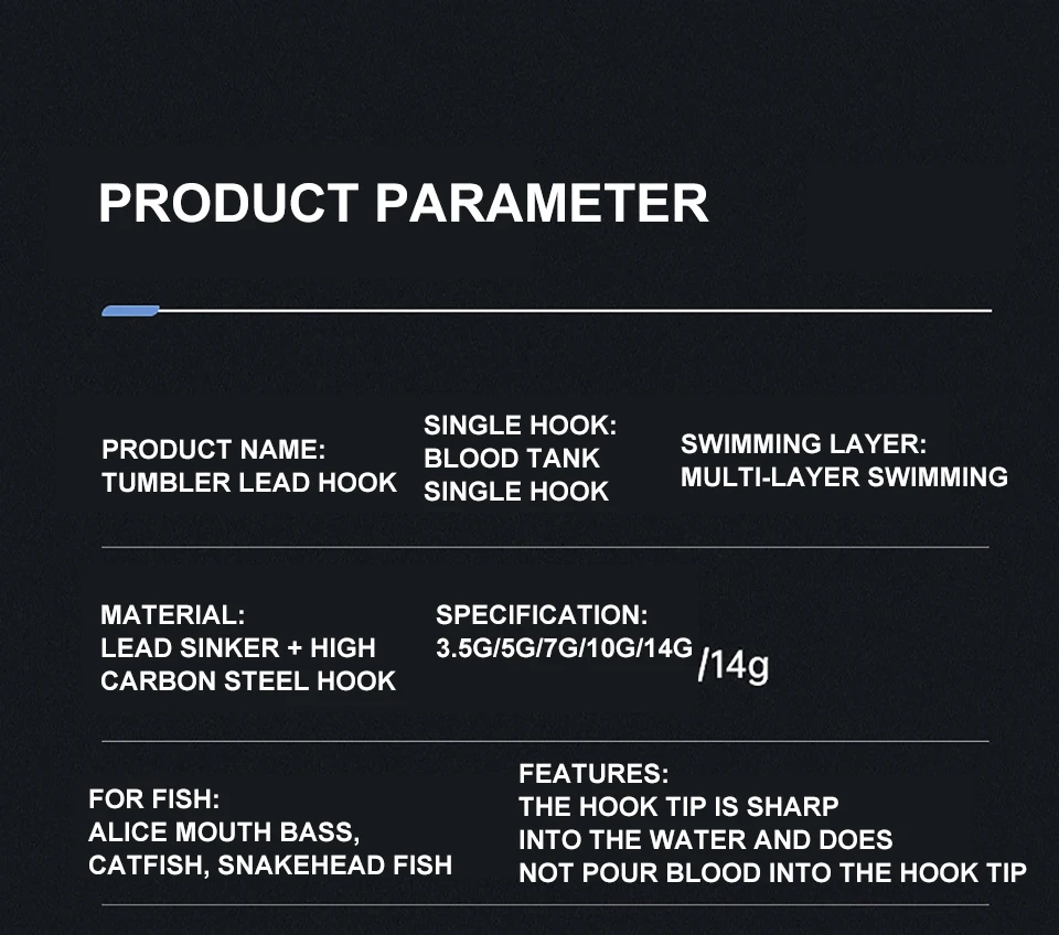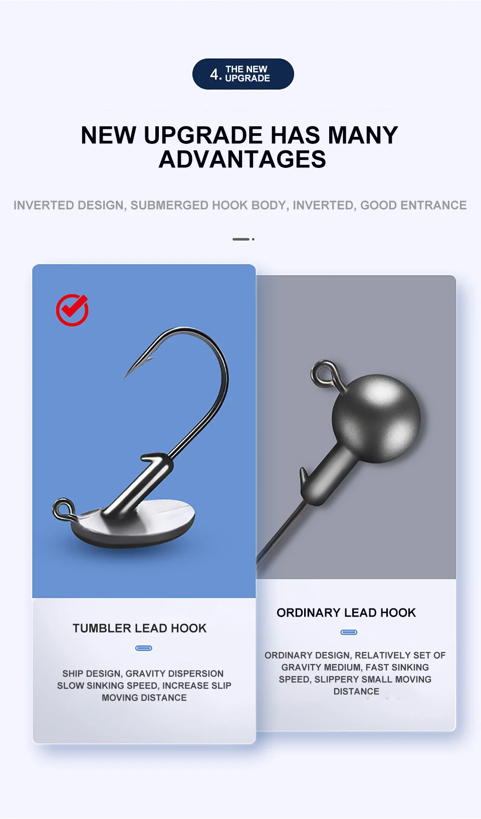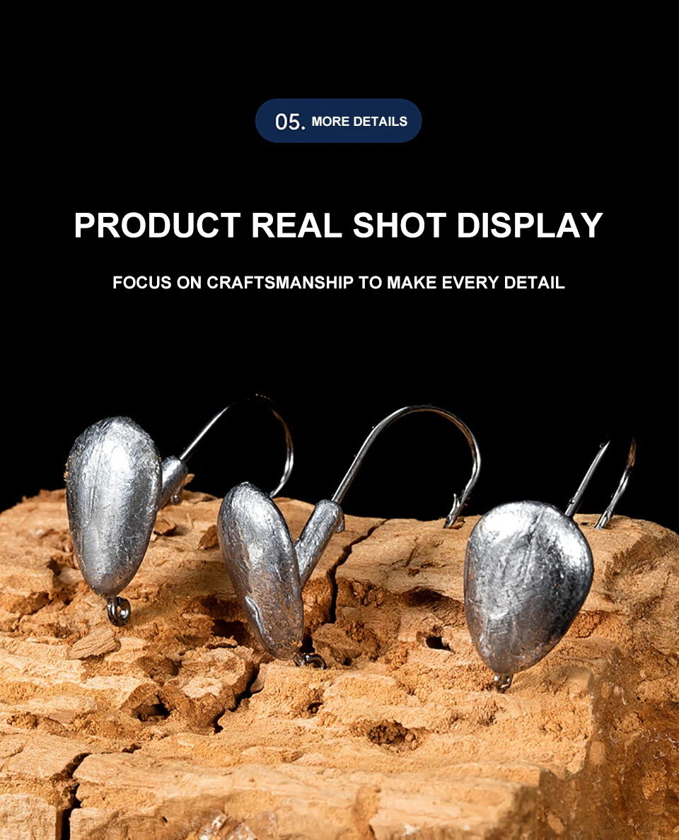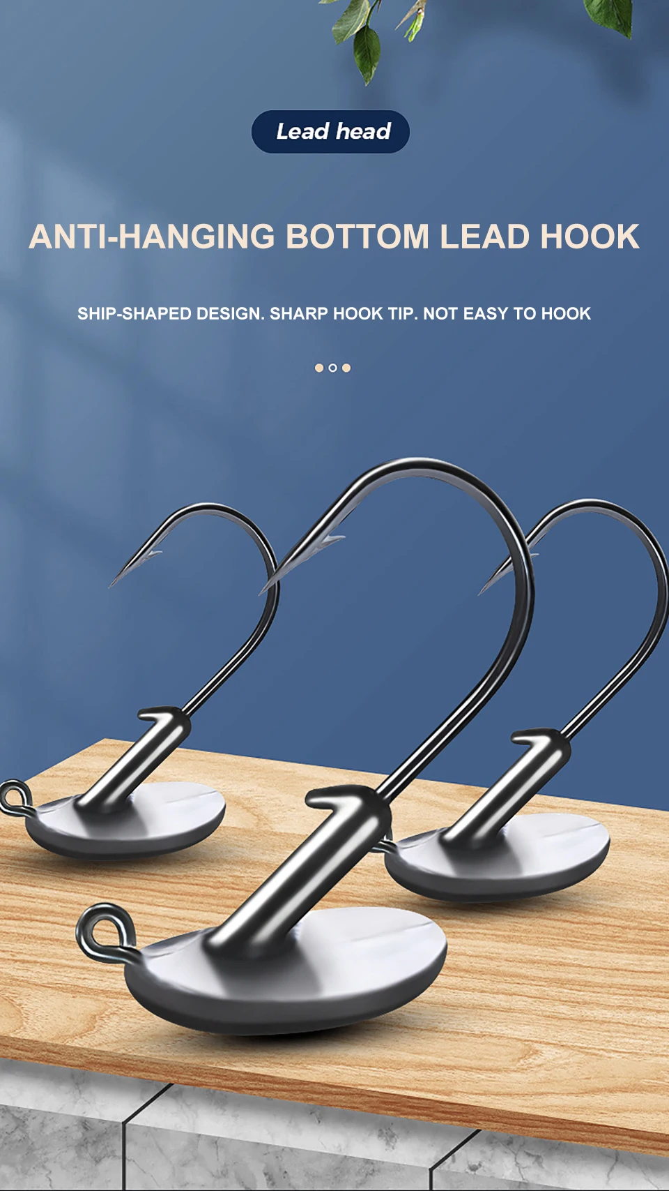 Cabezal de plomo con gancho de acero al carbono, súper afilado y duradero.