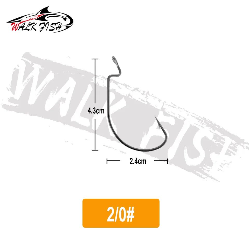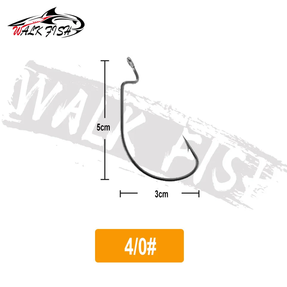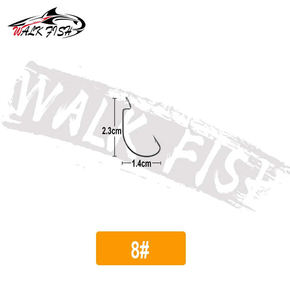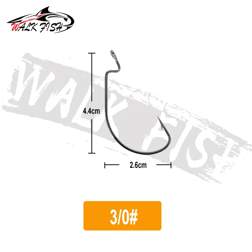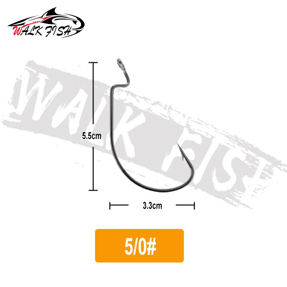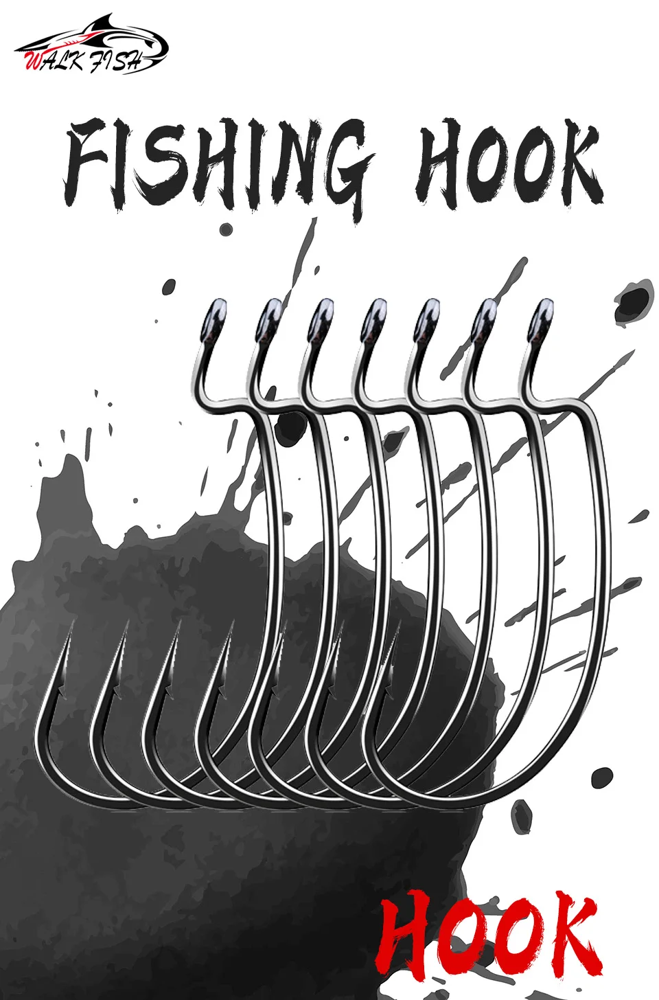 WALK FISH-anzuelo de pesca de 50 piezas, anzuelo de manivela ancha de acero al carbono, señuelo de gusano suave, con púas, para pesca de carpa