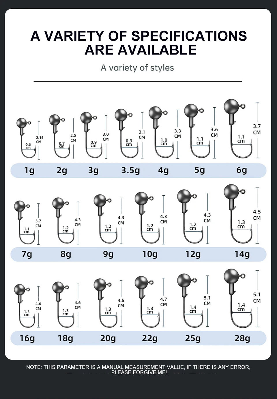 WALK FISH 5 PCS/Lot Jig Head 1G 2G 3G 4G 5G 7G 8g 10g 12g 14g 22G 25g 28G Head Hook Jig Anzuelo de pesca Jig Pike Fish accesorios