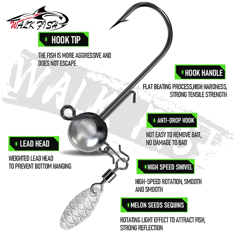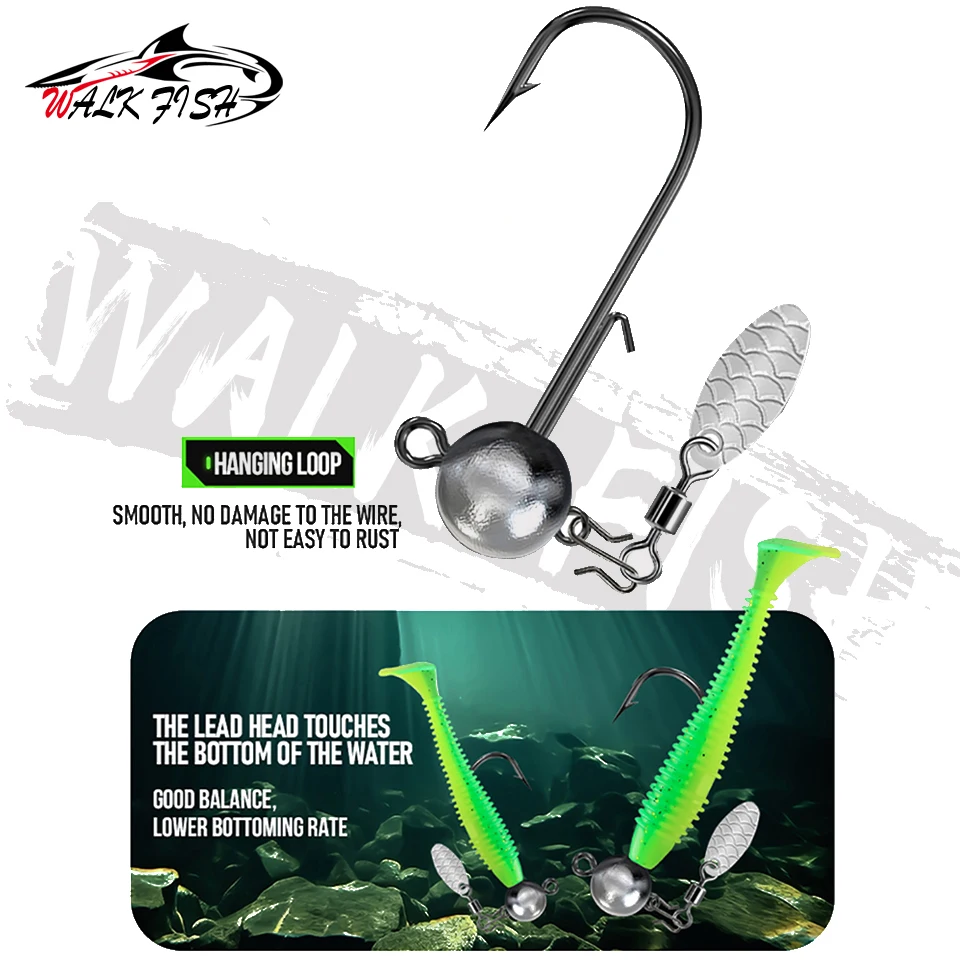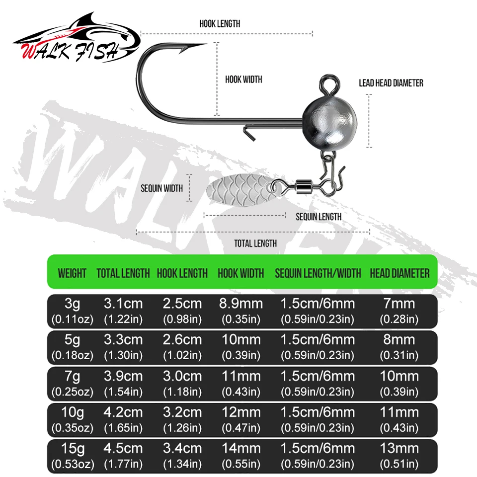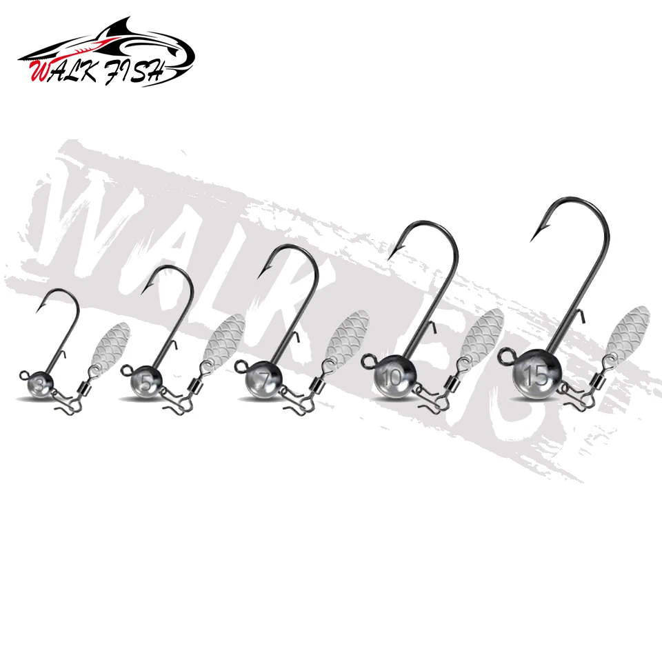 WALK FISH 5 uds anzuelo de pesca con cabeza de plantilla de bola redonda 3g 5g 7g 10g 15g con anzuelo de plomo de lentejuelas de semilla de melón para aparejos de pesca de gusano suave