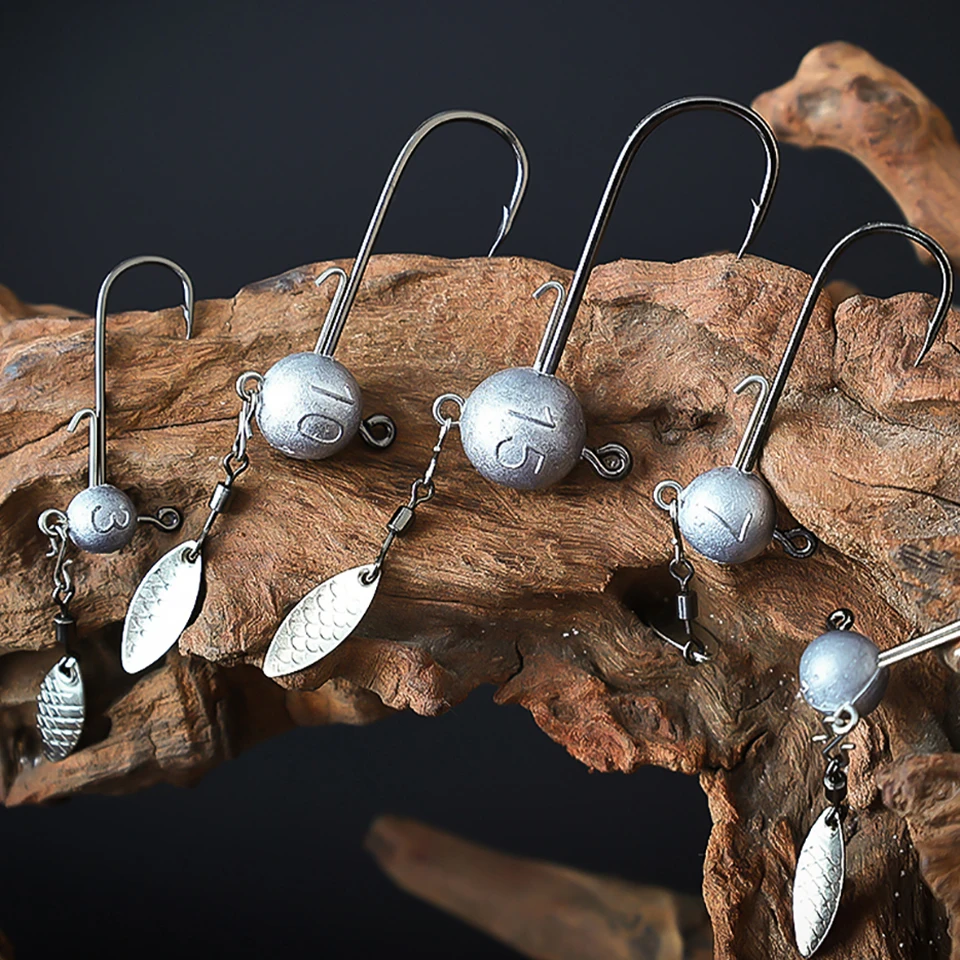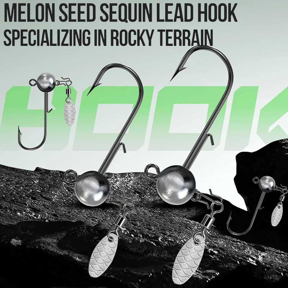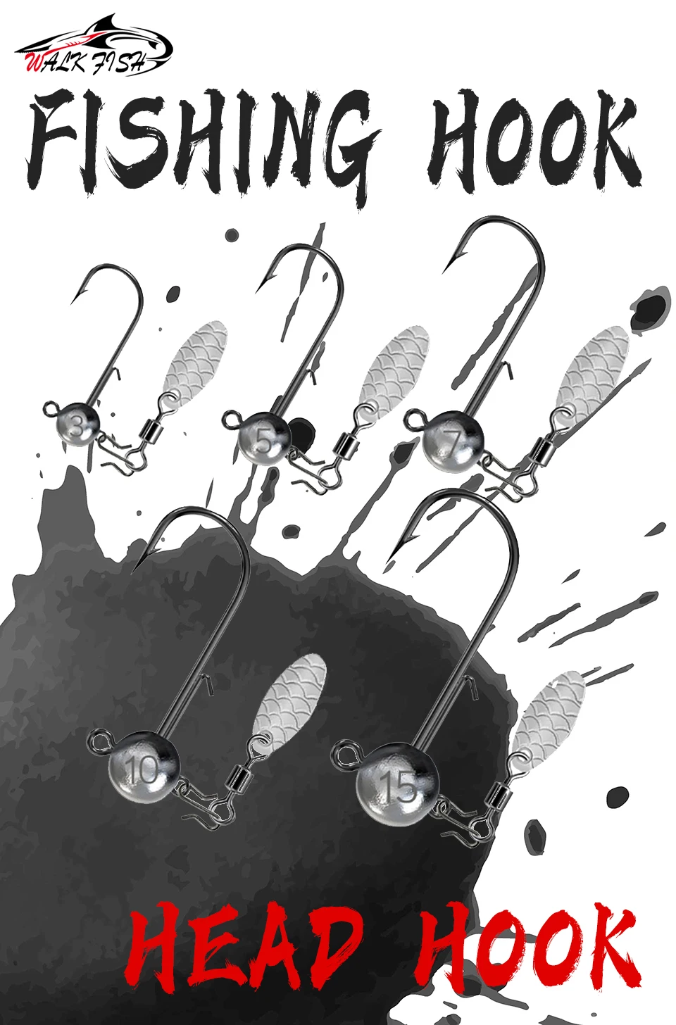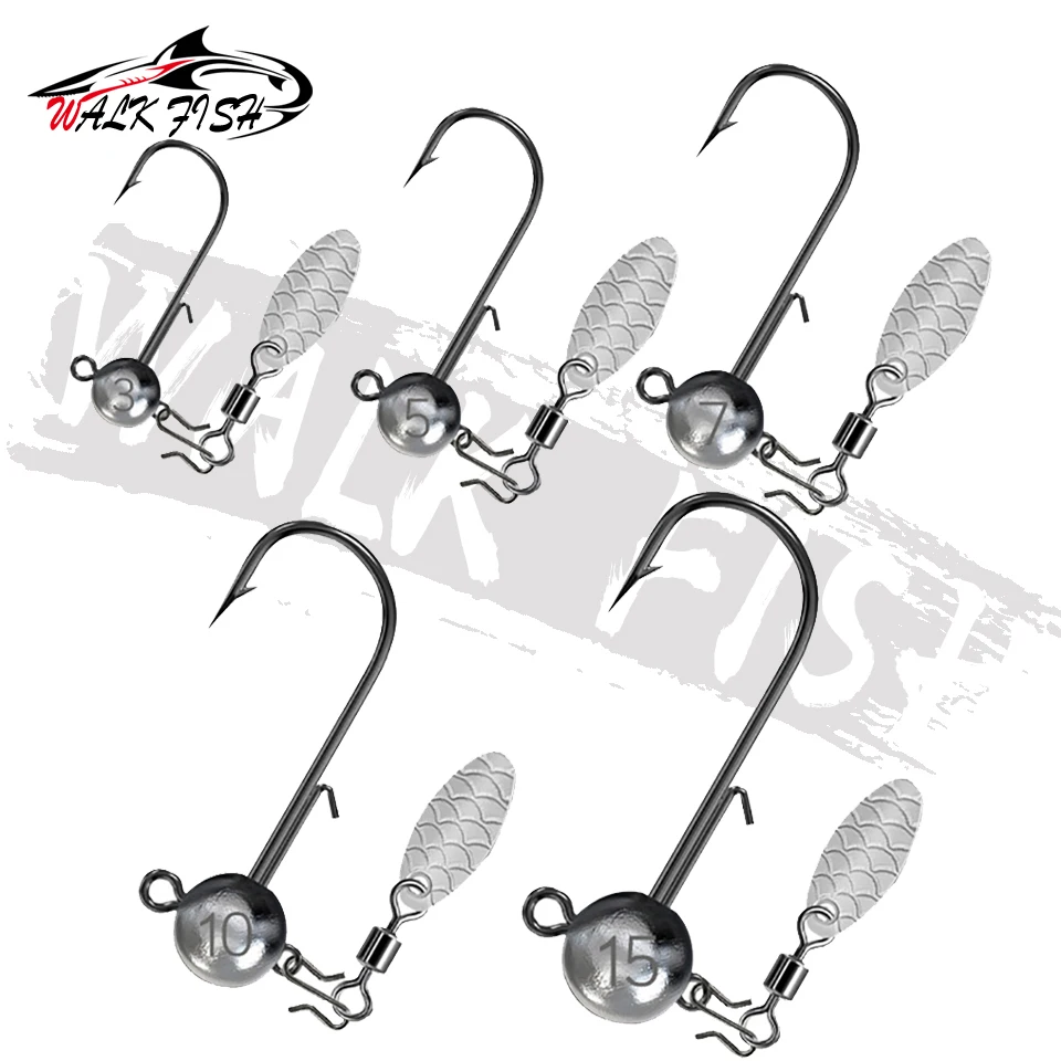 WALK FISH 5 uds anzuelo de pesca con cabeza de plantilla de bola redonda 3g 5g 7g 10g 15g con anzuelo de plomo de lentejuelas de semilla de melón para aparejos de pesca de gusano suave
