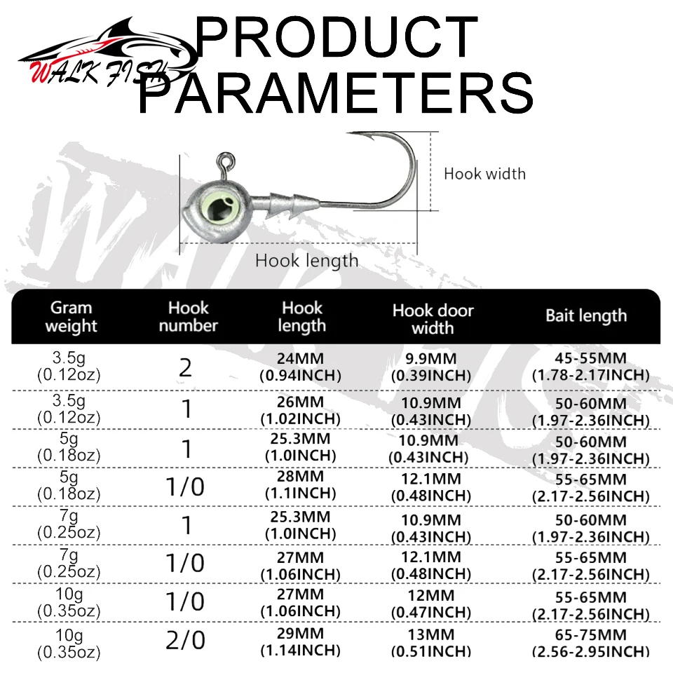 WALK FISH-anzuelo de plomo de ojo de pez, 3 uds./5 uds., 3,5g-10g, anzuelo de pesca de microraíz, manivela, corriente, pozo negro fino, pesca salvaje, lubina de mar de Texas