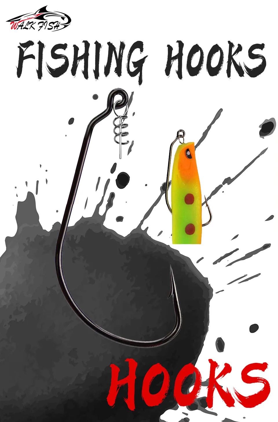 WALK FISH-Kit de anzuelos de pesca con pasador de centrado para cebos de señuelo suave, 5 tamaños
