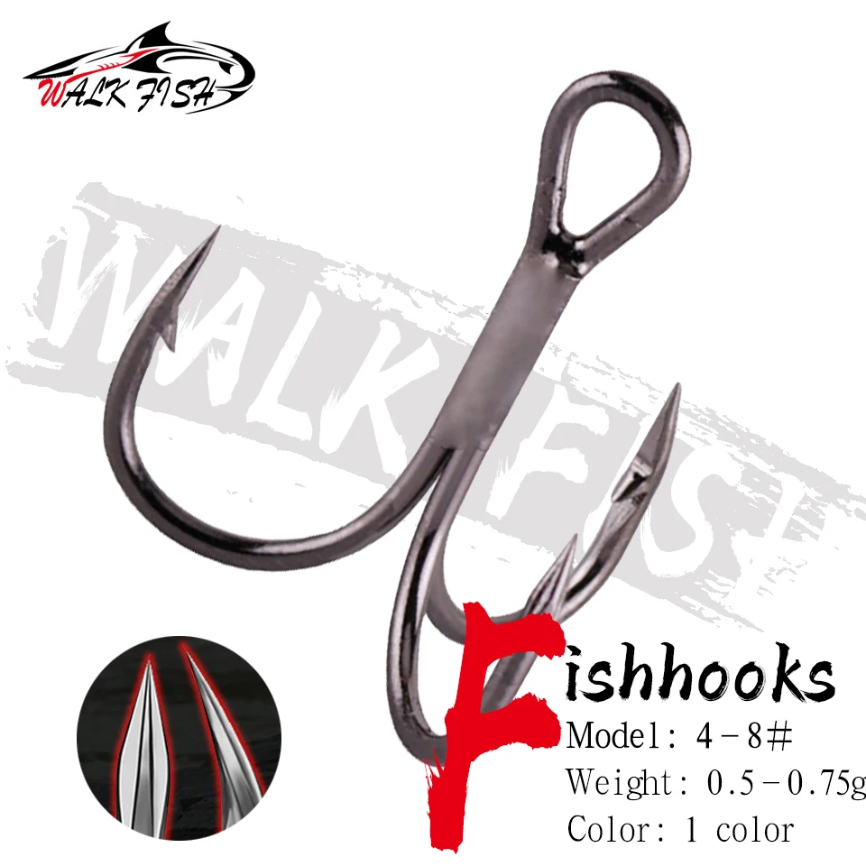 WALK FISH-anzuelos de pesca de Material de carbono de acero alto, gancho de pesca triple, redondo, plegable, para lubina de agua salada 4 #6 #8 #, herramienta de aparejos
