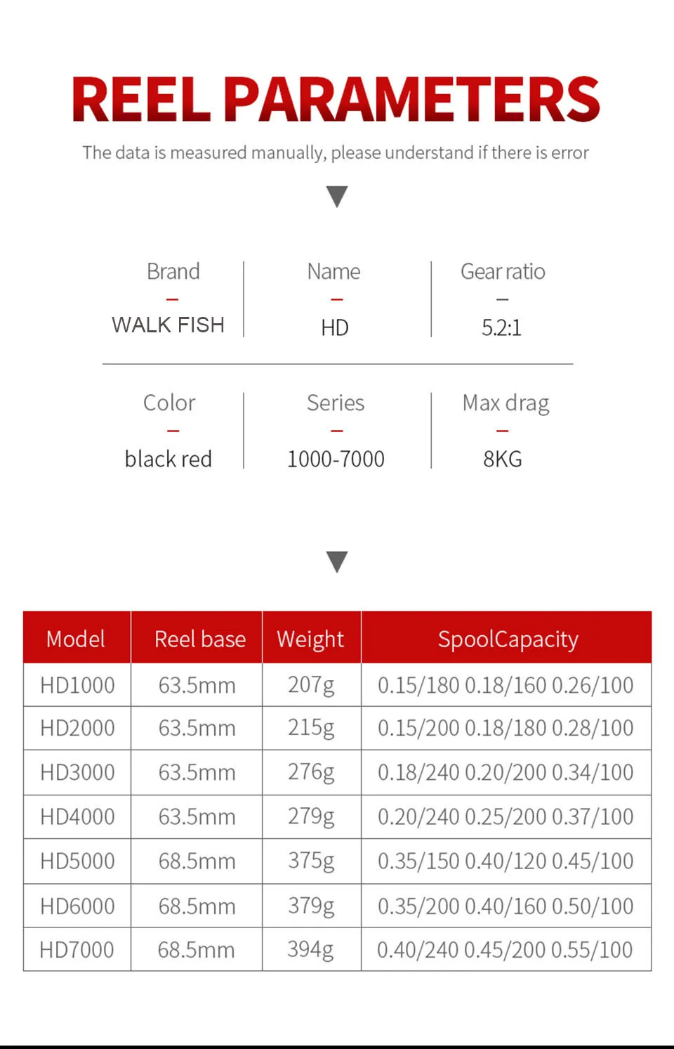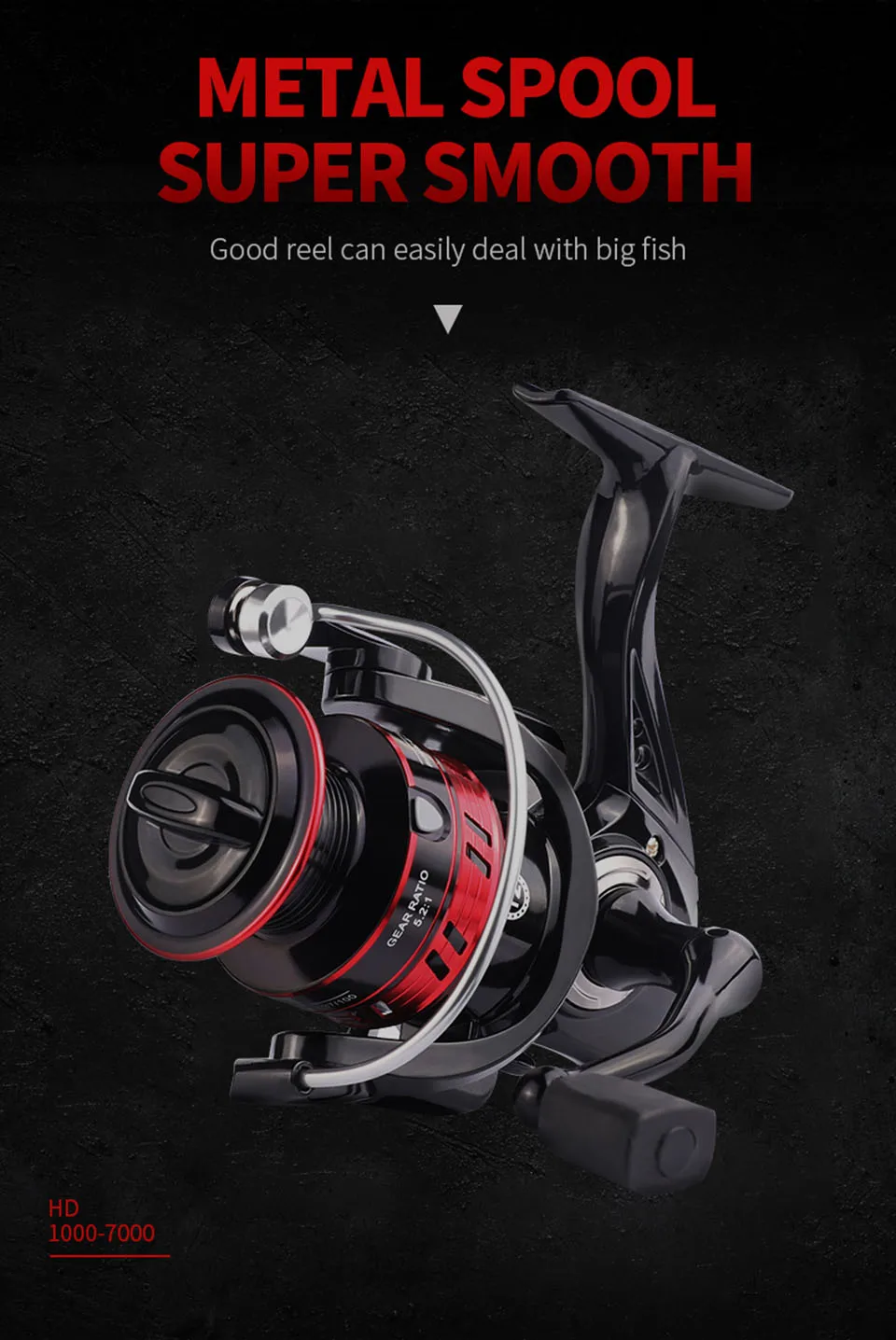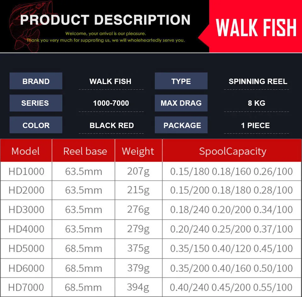 WALK FISH-carrete de pesca giratorio, bobina de Metal de alta velocidad, HD1000-7000, 8kg, 5,2: 1