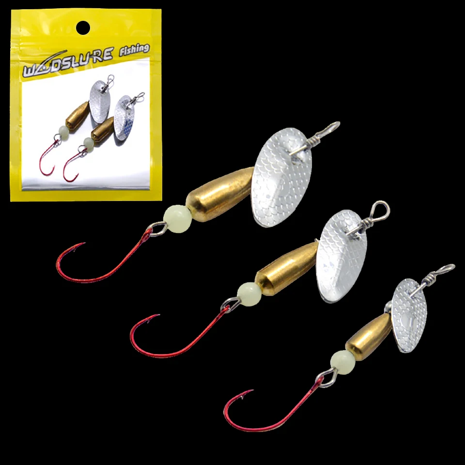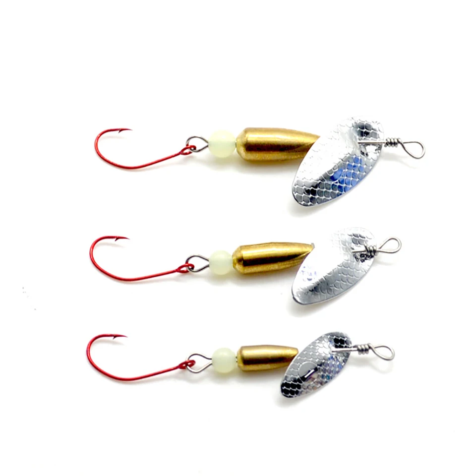 2 piezas 3g/5g cebo Artificial hundimiento de pesca anzuelos de plumas triples cebo giratorio de Metal cuchara señuelo de pesca lentejuelas