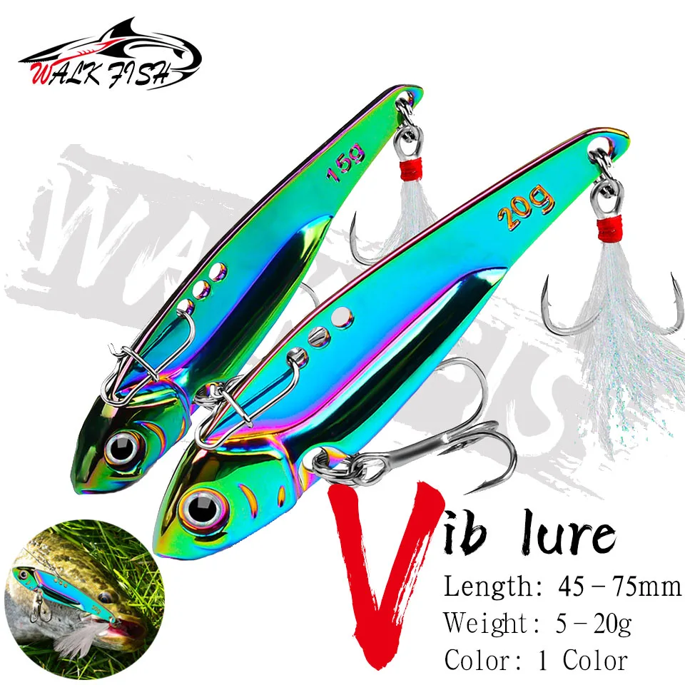 WALK FISH-Cebo artificial para lubina, 1 unidad, de Metal, capa de agua de largo alcance, vibración colorida, lentejuelas VIB, cebo especial