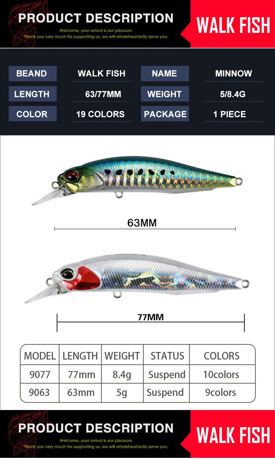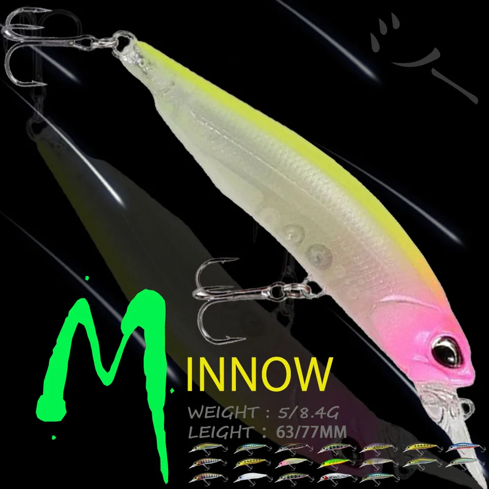 WALK FISH-Cebo duro Artificial para pececillos, 1 unidad, 5/8G, 63/77MM, ojos 3D, suspensión, Wobblers, aparejos de pesca de invierno para carpa y lubina