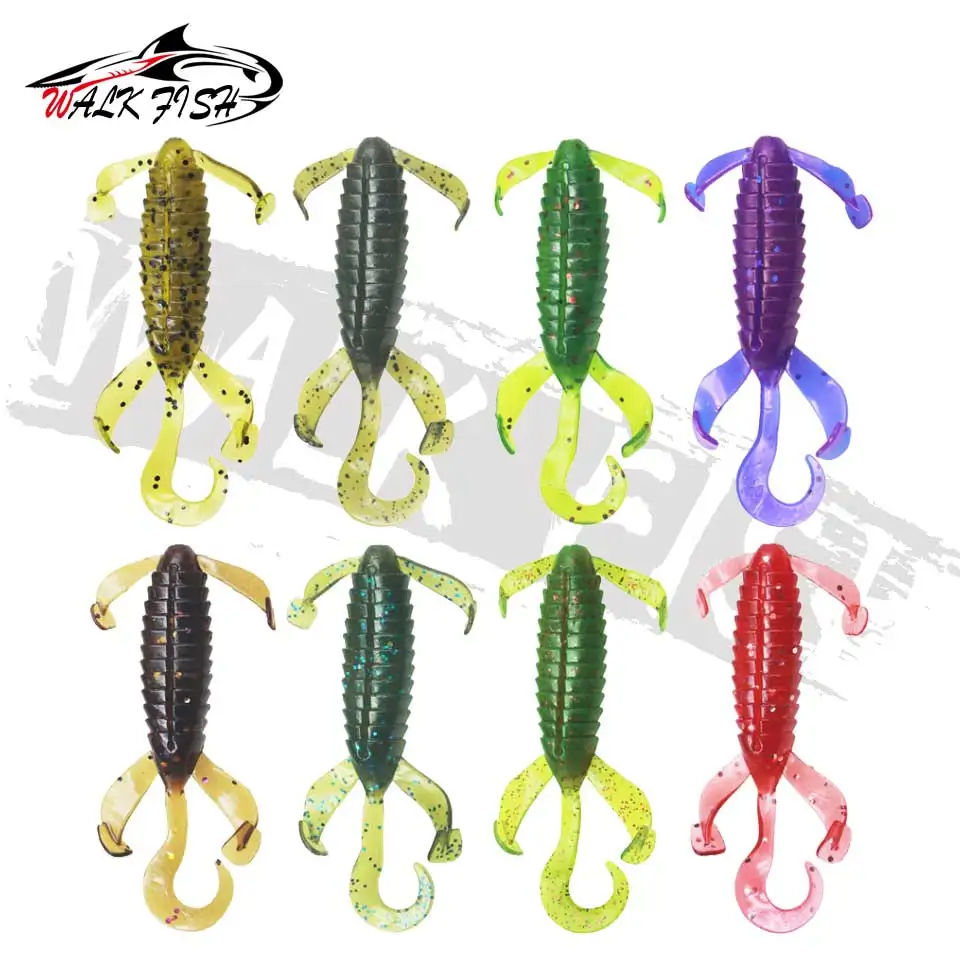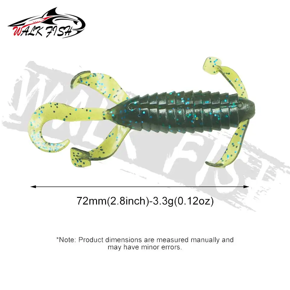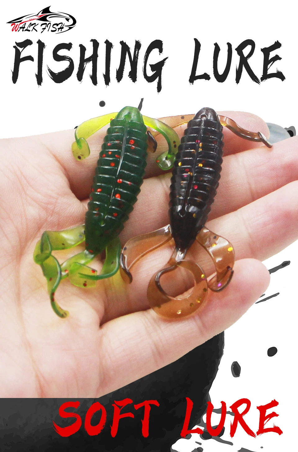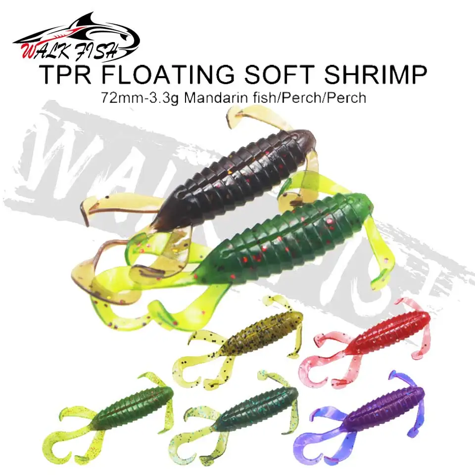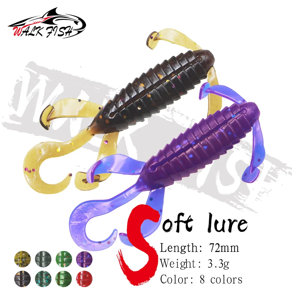 WALK FISH-Cebo flotante de 5 piezas, señuelo de pesca TPR de plástico suave, 72mm, 3,3g, Swimbait, gusano de cola larga, señuelo de lubina Artificial