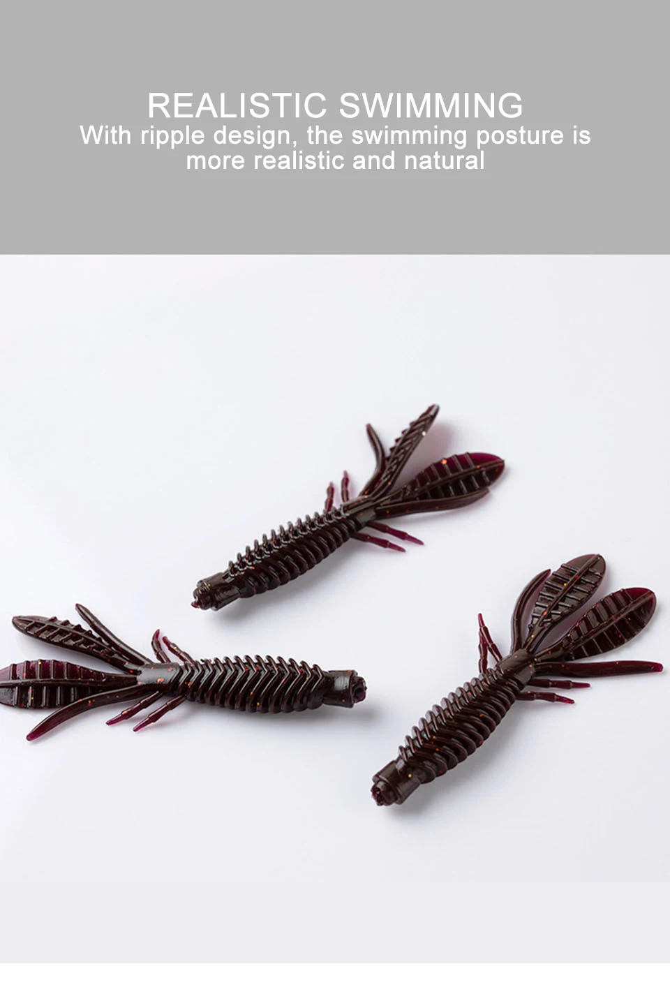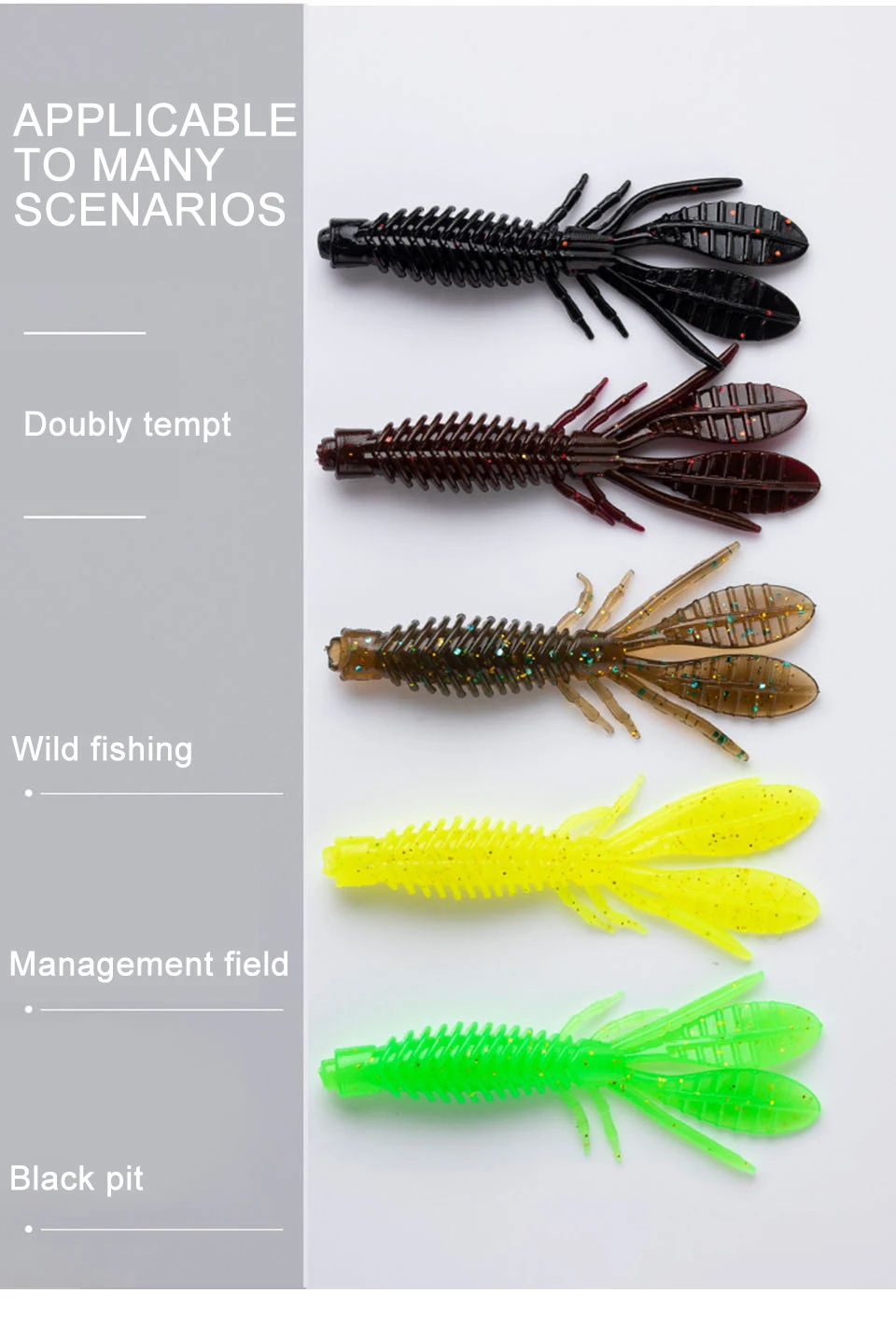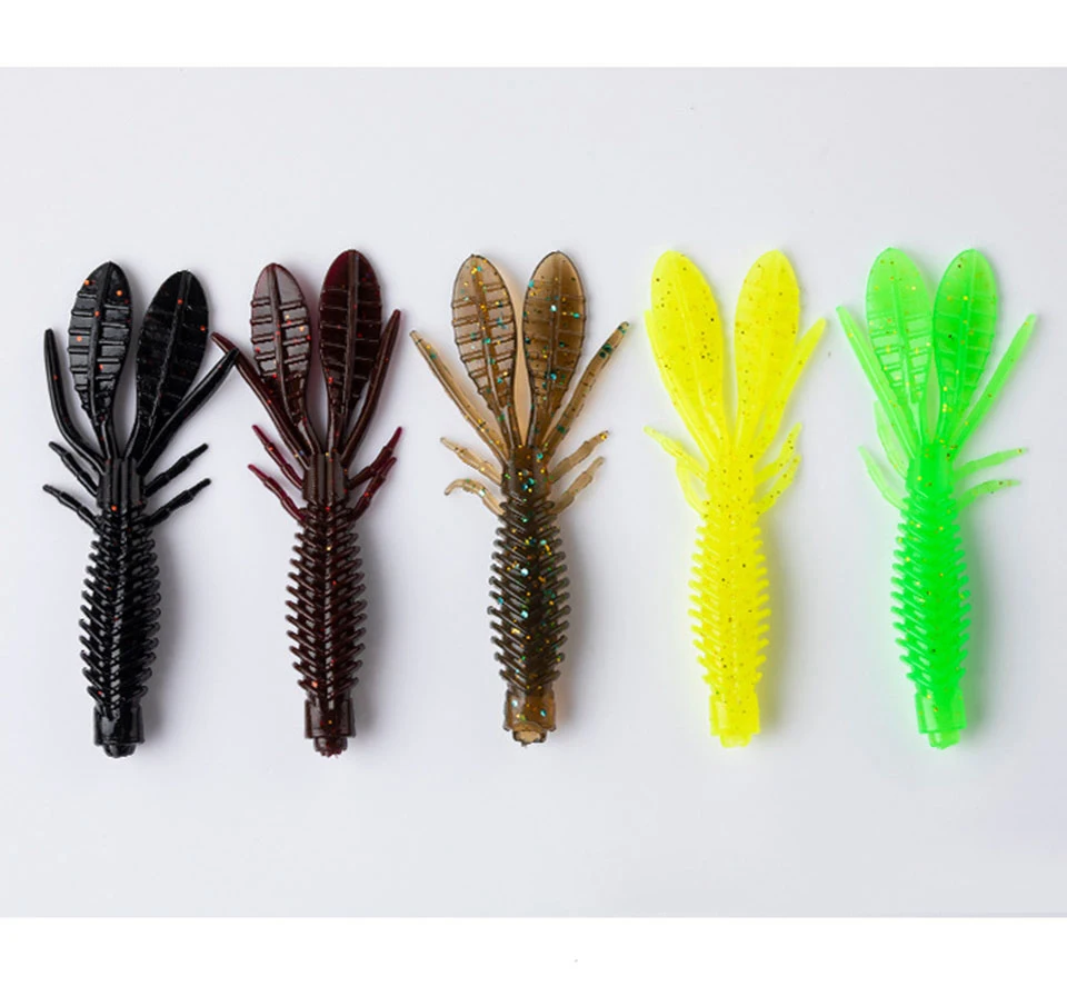 Anzuelo 10 unids/lote 65mm/2g cebo de Pesca de camarón flotante señuelo Artificial elástico de plástico blando anzuelo carpa baracuda aparejos Pesca