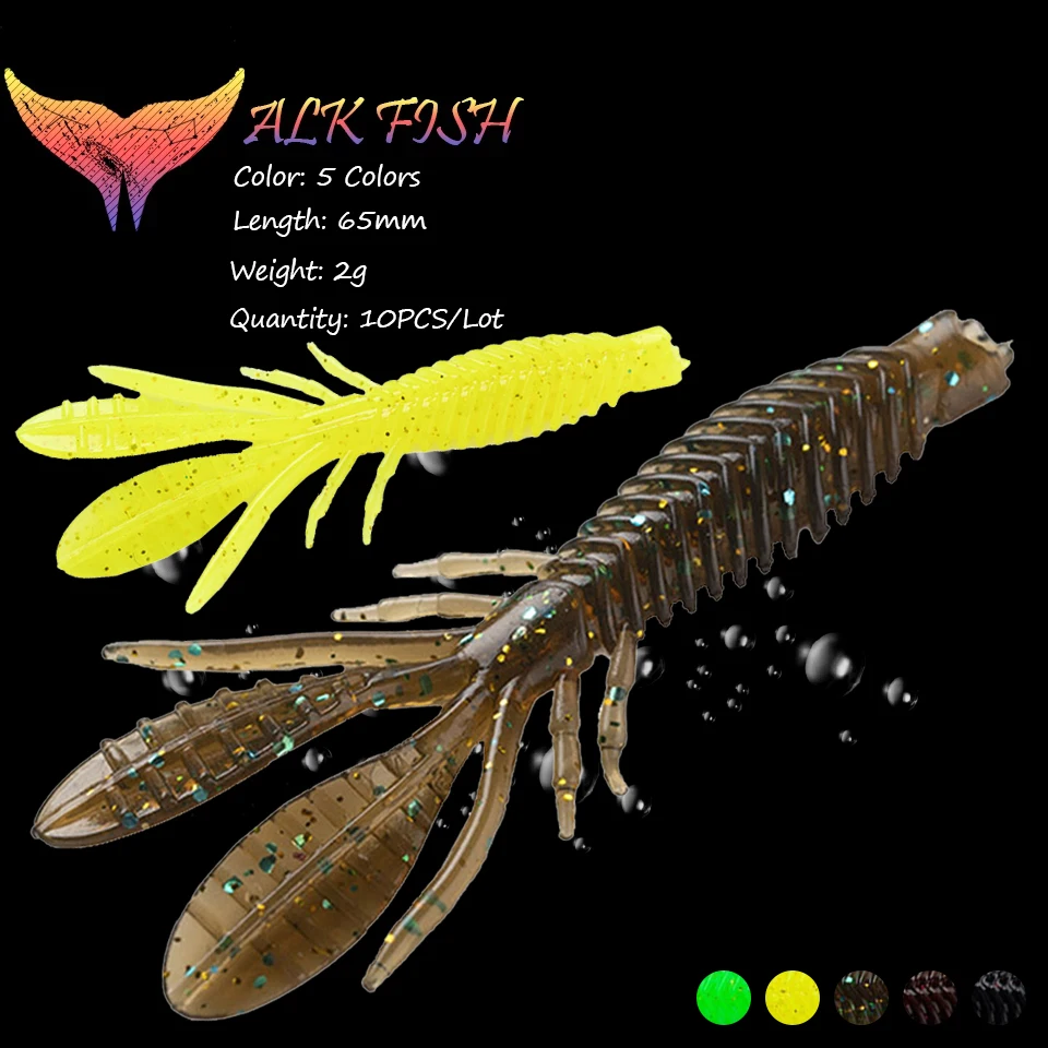 Anzuelo 10 unids/lote 65mm/2g cebo de Pesca de camarón flotante señuelo Artificial elástico de plástico blando anzuelo carpa baracuda aparejos Pesca