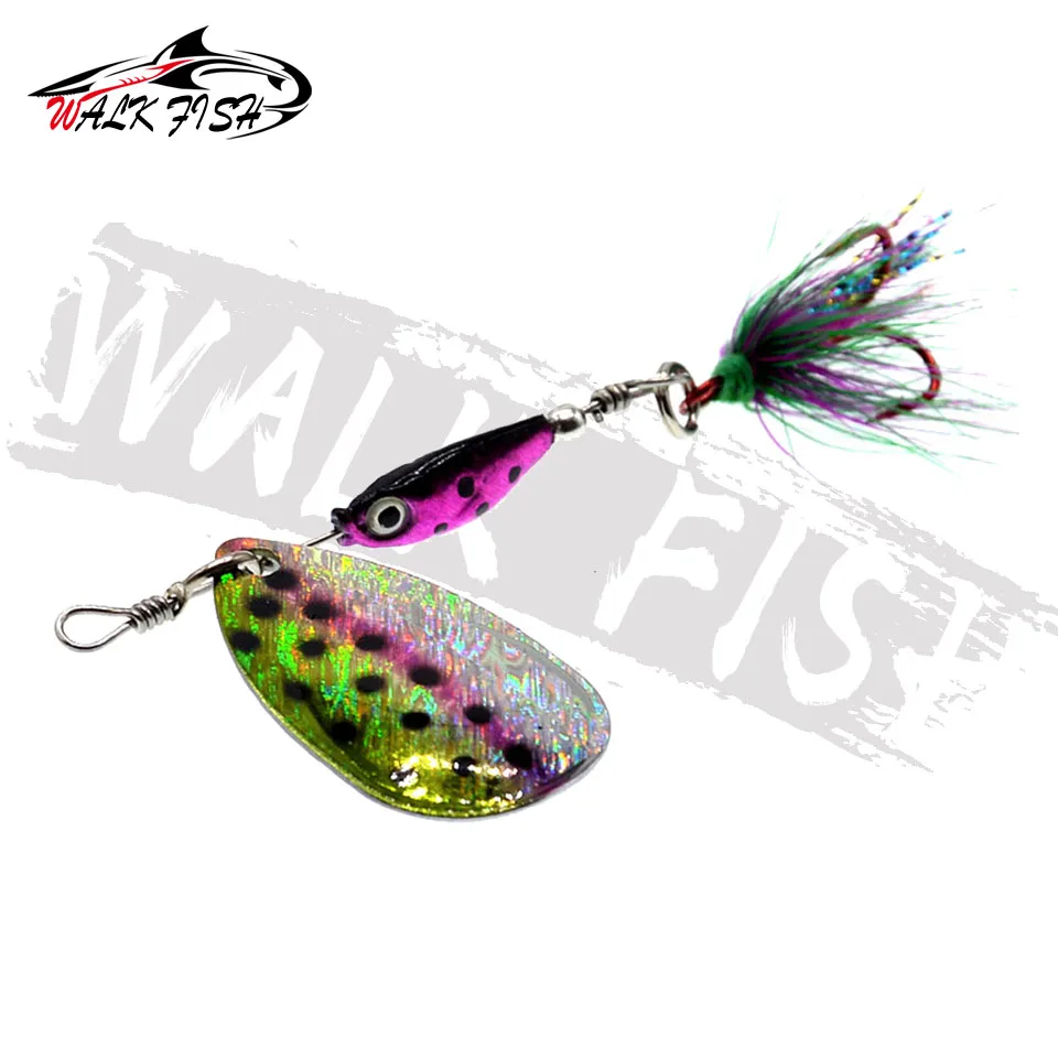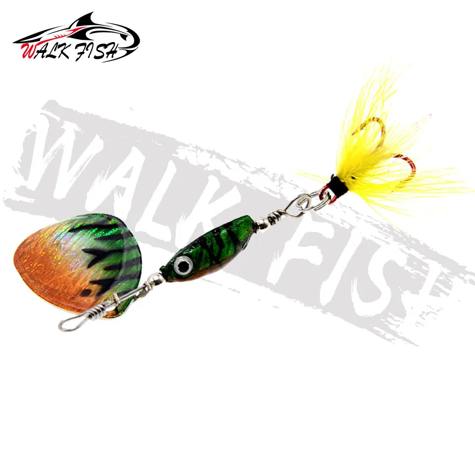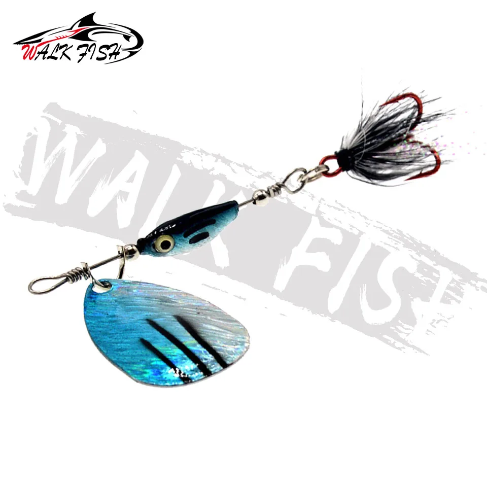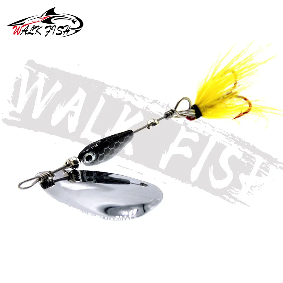WALK FISH-cebo giratorio de 6,5g, cuchara dura, señuelos de lubina, señuelo de pesca de Metal VIB con anzuelos triples de plumas para pesca de Lucio, 1 Uds.
