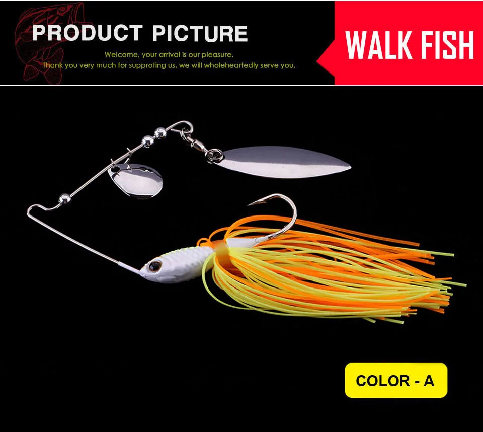 WALK FISH-Cebo giratorio de alta calidad, 1 unidad, 15,8g, cuchara de Metal, 3D zumbador, ojo de pez, señuelo de Pesca, anzuelo, plantilla de goma