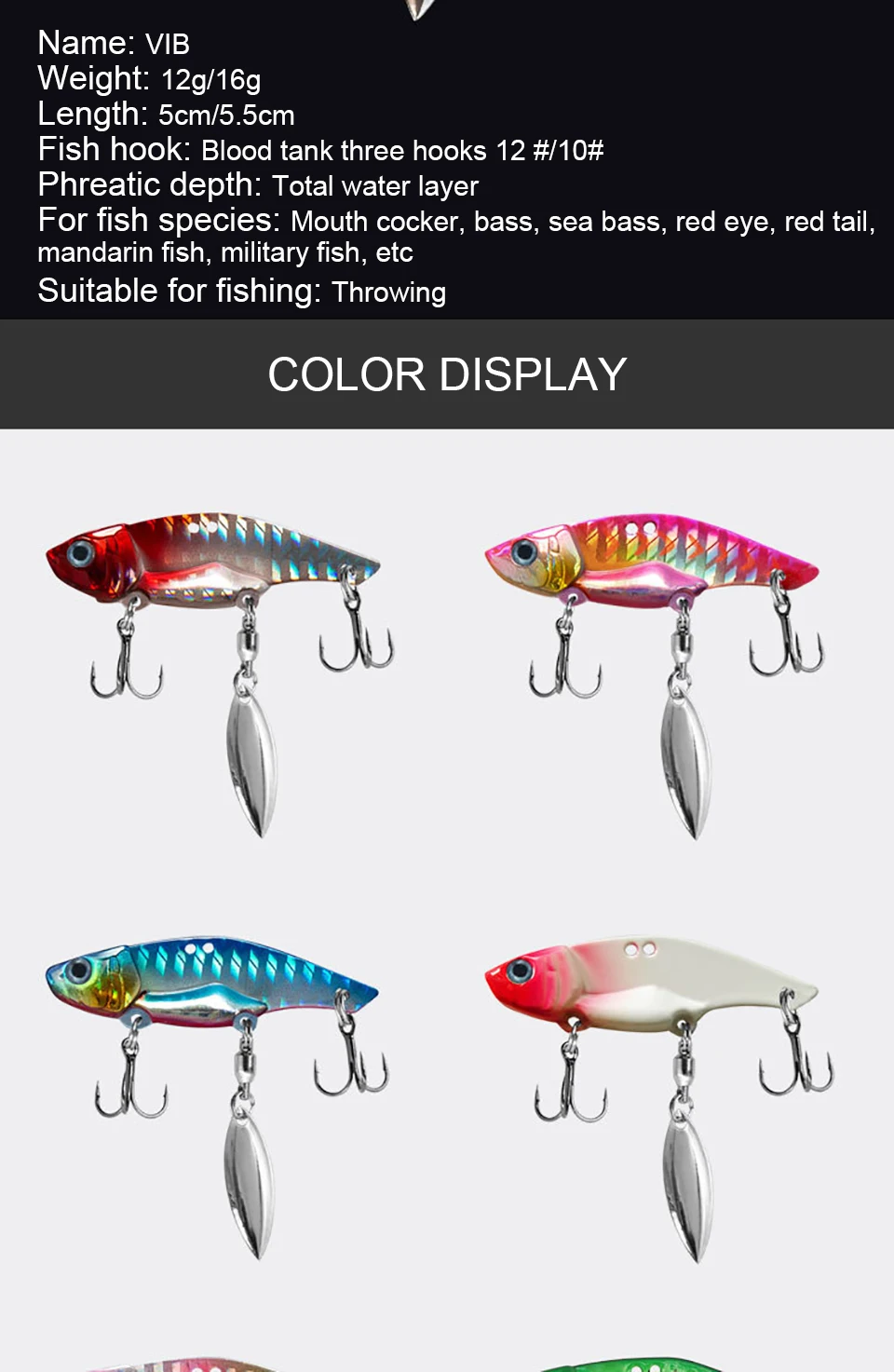 WALK FISH-Cebo giratorio de Metal VIB, 1 piezas, cuchara giratoria, Señuelos de Pesca de 12g 16g, Jigs, trucha, aparejos duros de Pesca de invierno