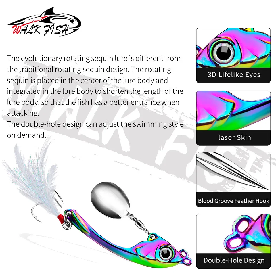 WALK FISH-Cebo giratorio de Metal Vib, señuelo de Pesca, cuchara giratoria, Wobbler, hundimiento, cebo duro con lentejuelas, 9g, 13g, 17g
