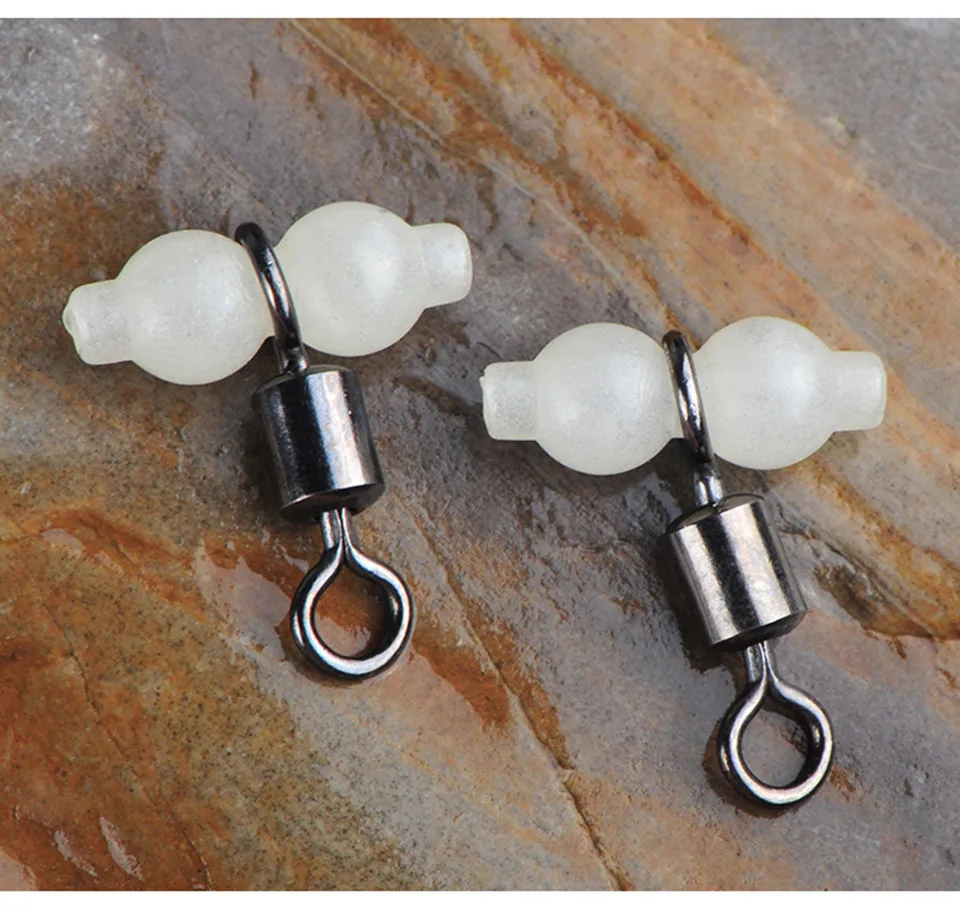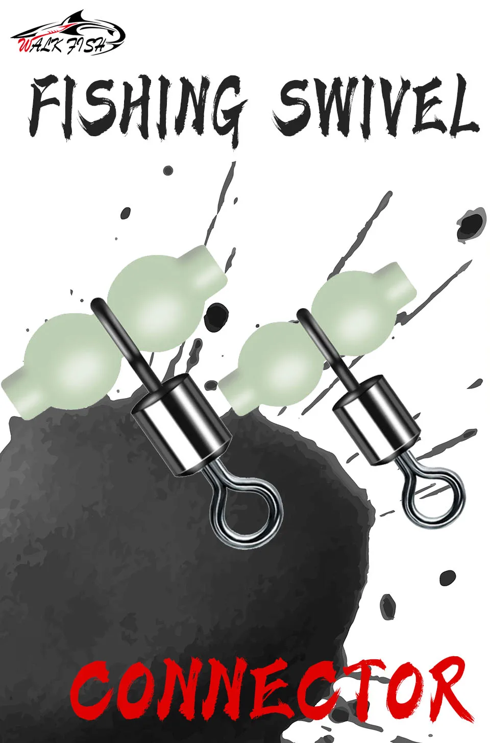 WALK FISH 30 Uds. Conector giratorio de pesca luminoso barril rodante cuentas fluorescentes de 3 vías anzuelo señuelo línea conector aparejos