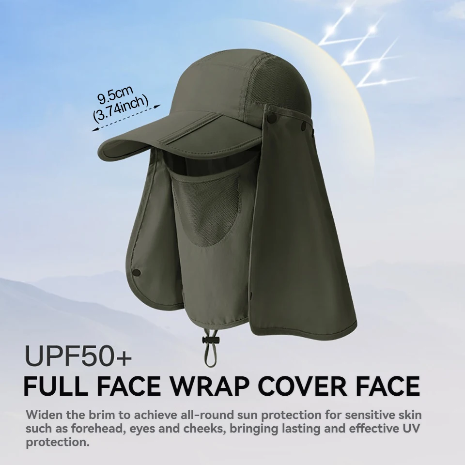 Cobertura facial completa para cubrir el rostro: ala ensanchada, que brinda protección solar integral para áreas sensibles como la frente, los ojos y las mejillas, brindando protección UV eficaz y duradera.