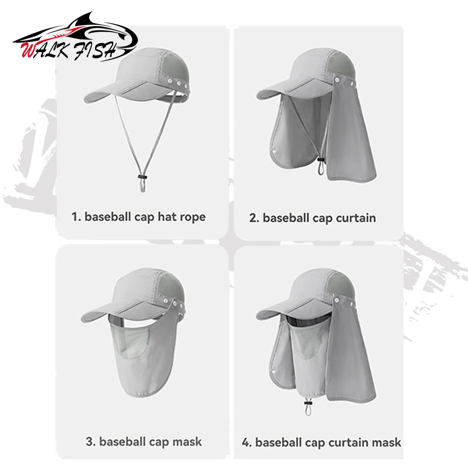 WALK FISH gorra de pesca UPF50 + verano deportes transpirable moda gorra plegable absorción de sudor cara completa sombrero de protección solar