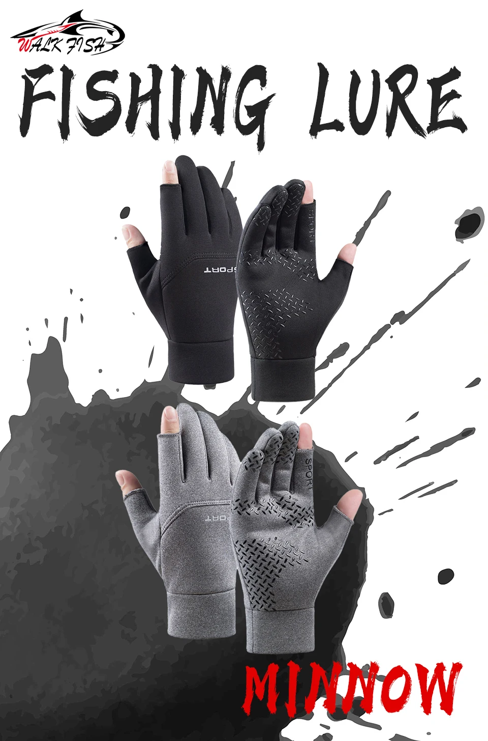 Guante de pesca WALK FISH, dos dedos expuestos, forro polar para hombre y mujer, Otoño Invierno, comida para llevar, entrega Express, pantalla táctil, protección contra el viento