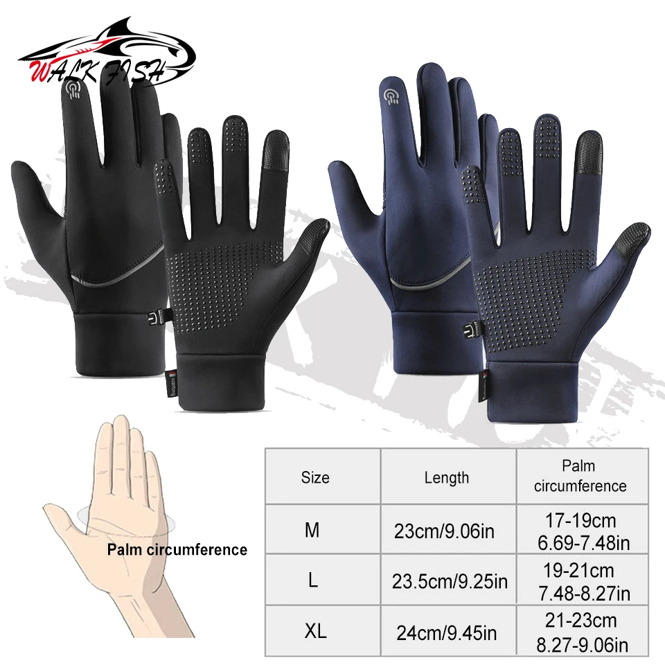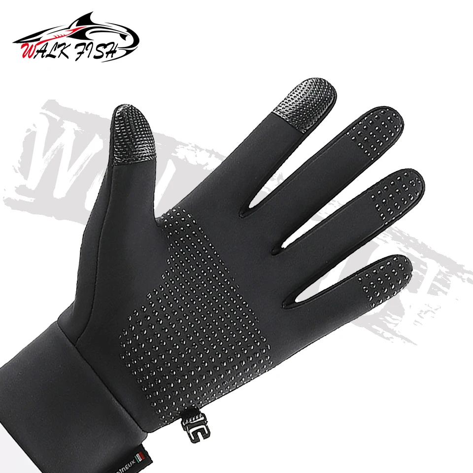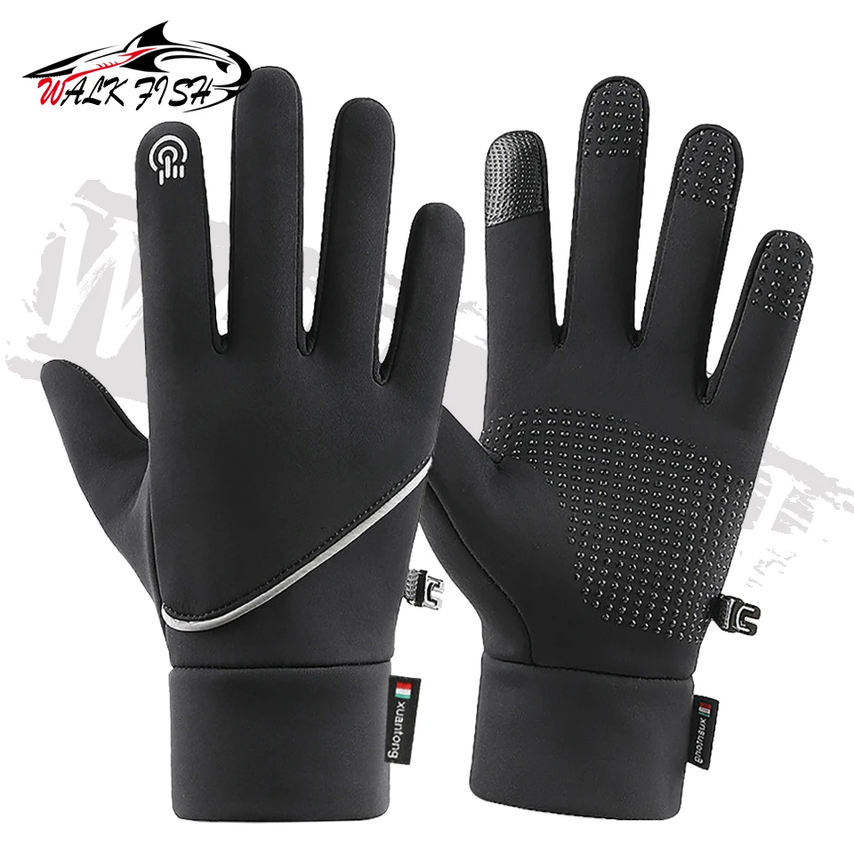 WALK FISH Guantes de pesca antideslizantes impermeables Correr Manoplas de esquí Hombres Deportes A prueba de viento Polar térmico Calor Bicicleta Guantes de bicicleta