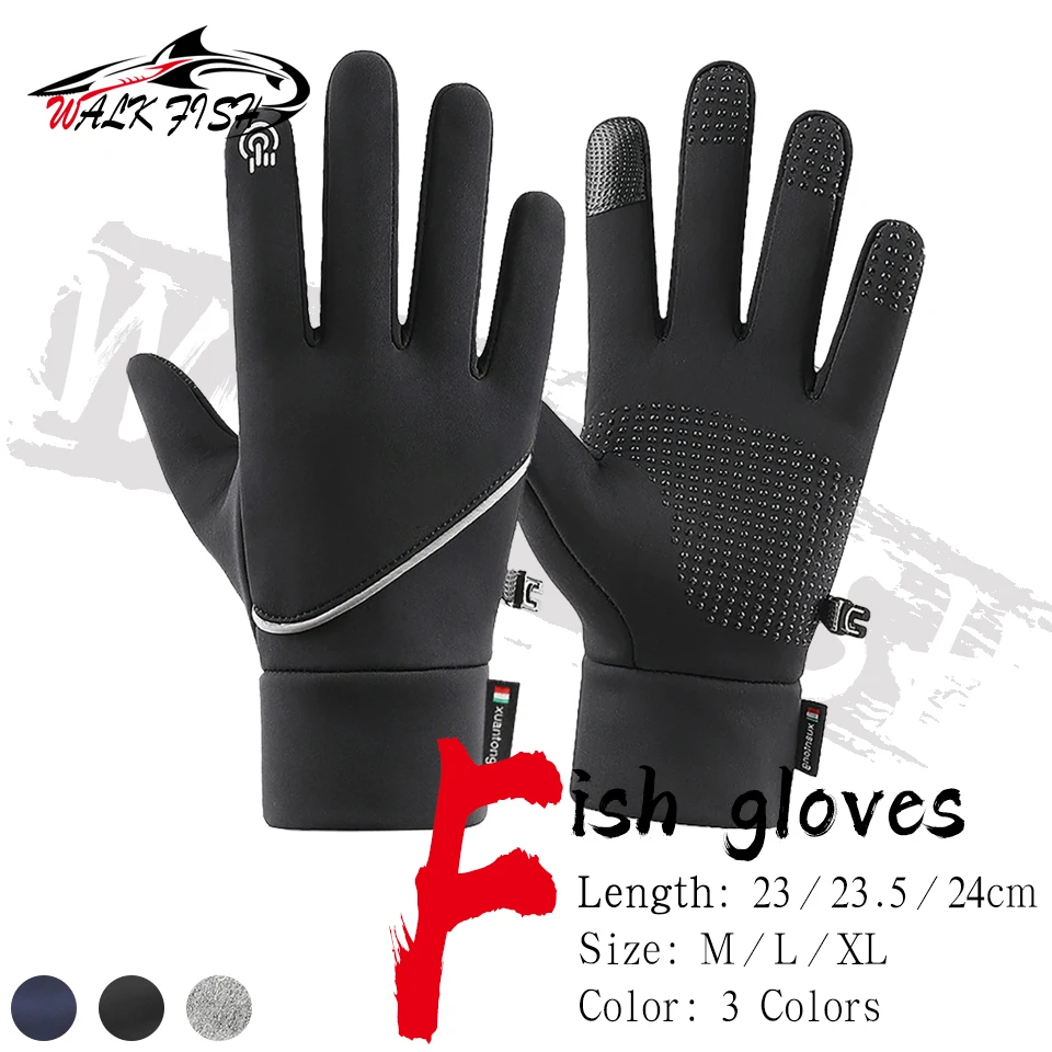 WALK FISH Guantes de pesca antideslizantes impermeables Correr Manoplas de esquí Hombres Deportes A prueba de viento Polar térmico Calor Bicicleta Guantes de bicicleta