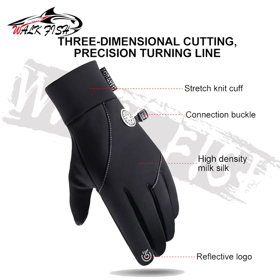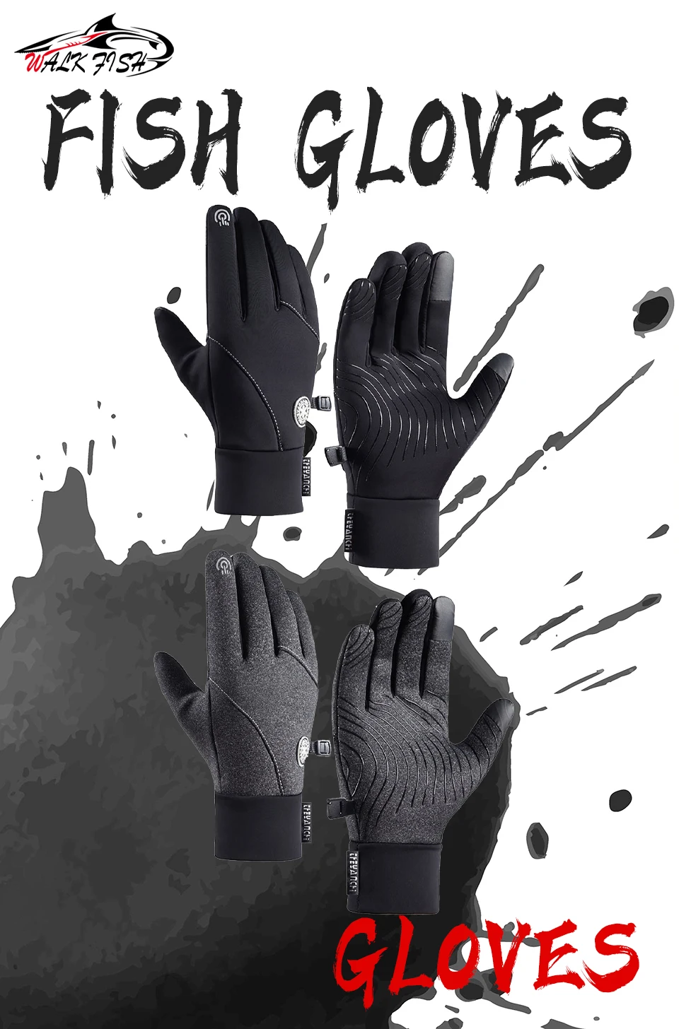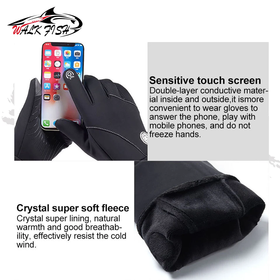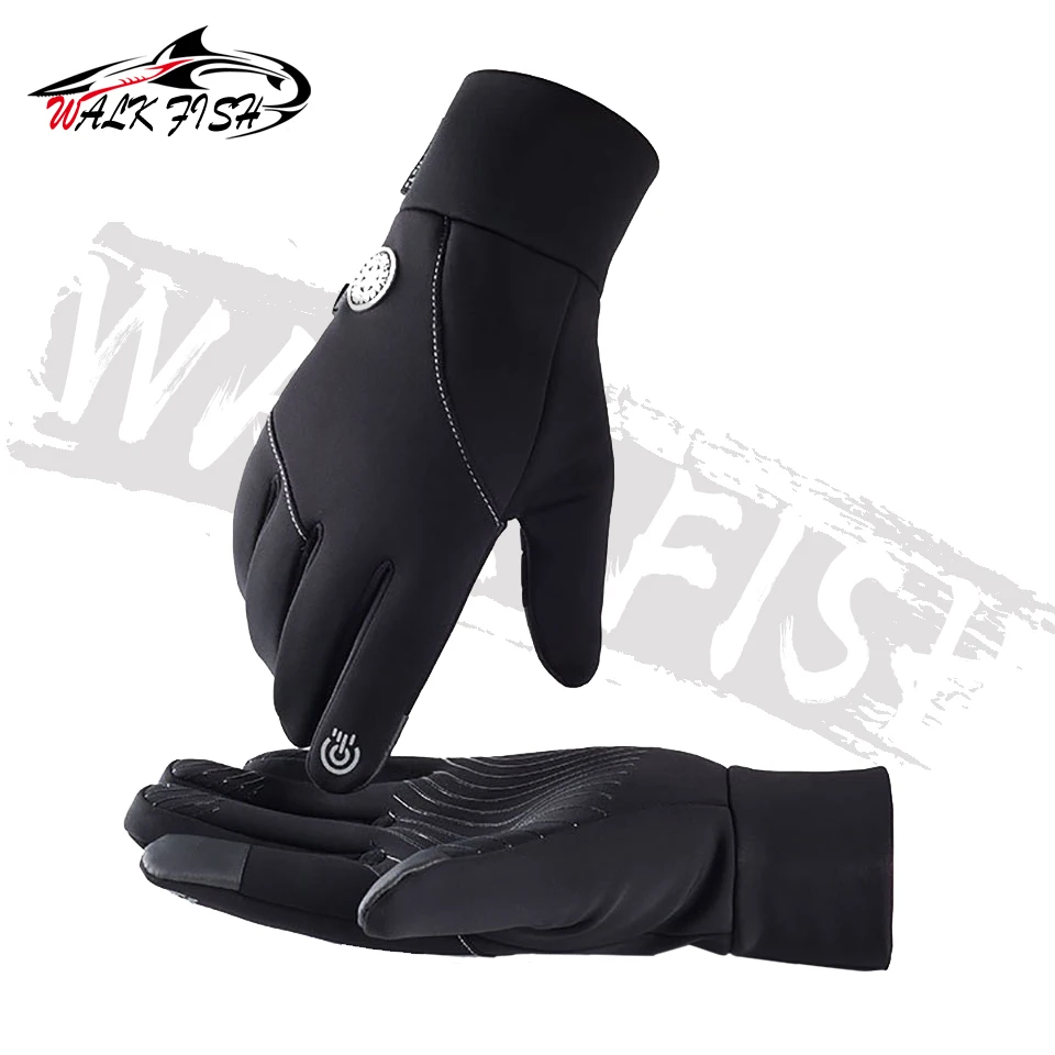 WALK FISH Guantes de pesca antideslizantes de invierno para exteriores, atléticos, pantalla táctil, resistentes a la abrasión, acolchados, cálidos, para Fitness, ciclismo, correr