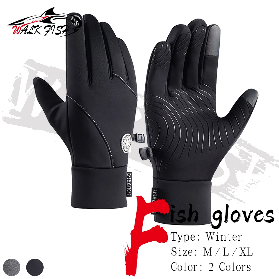 WALK FISH Guantes de pesca antideslizantes de invierno para exteriores, atléticos, pantalla táctil, resistentes a la abrasión, acolchados, cálidos, para Fitness, ciclismo, correr