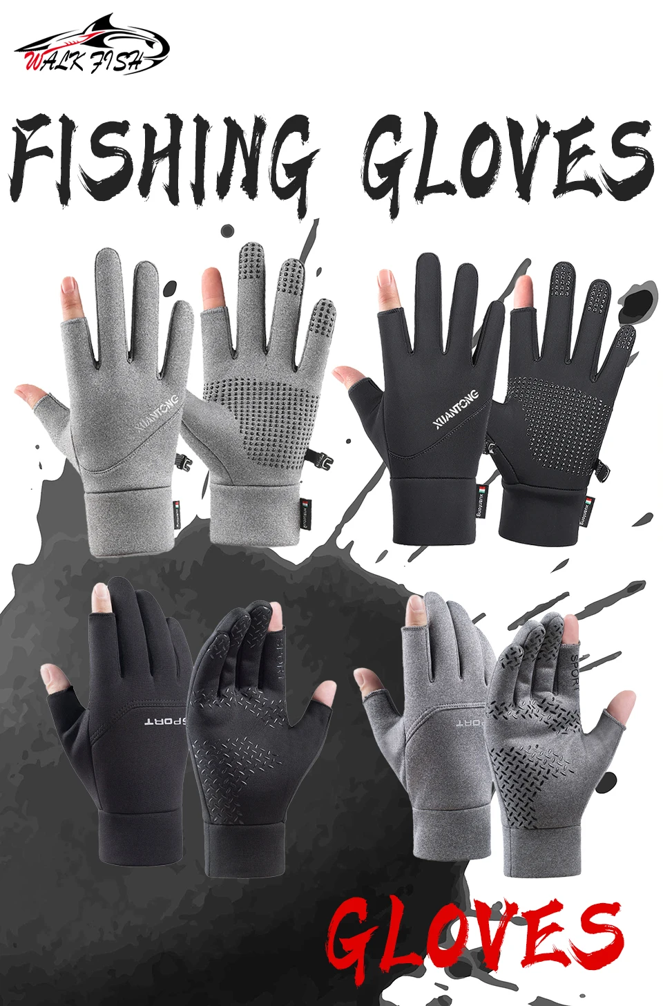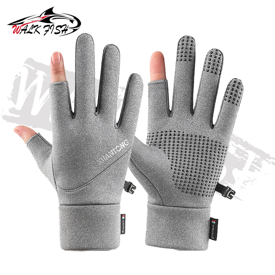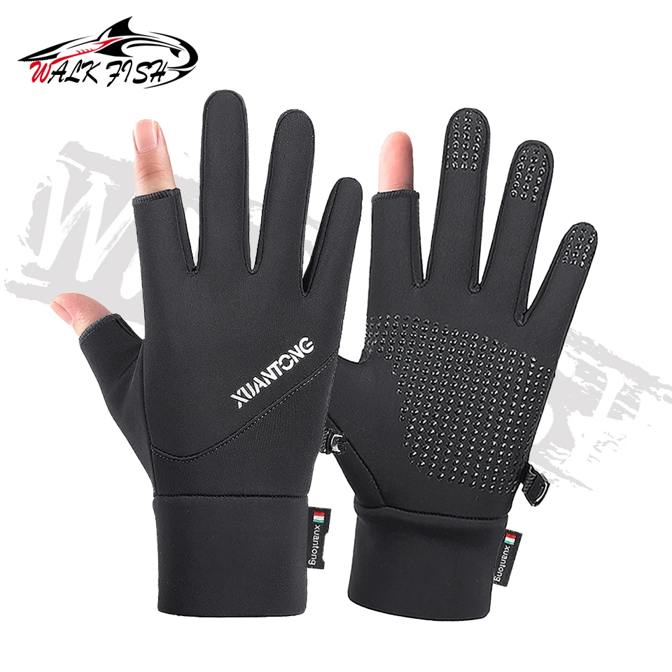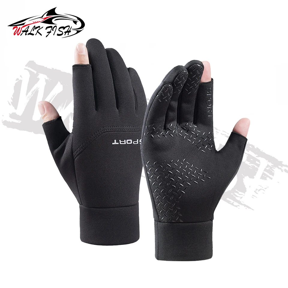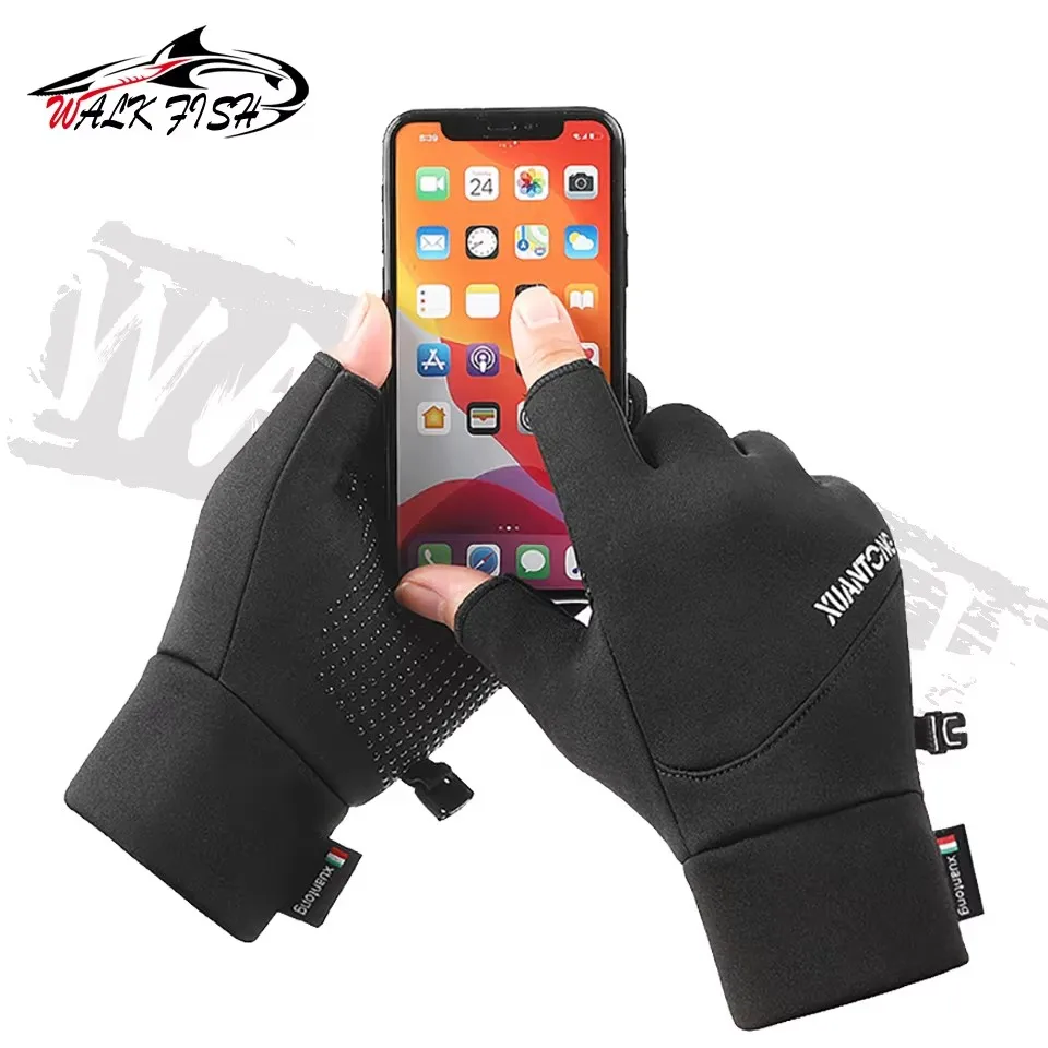Guantes de pesca WALK FISH, forro polar expuesto con dos dedos para mantener el calor, antideslizantes, entrega urgente, protección contra el viento para pantalla de ciclismo